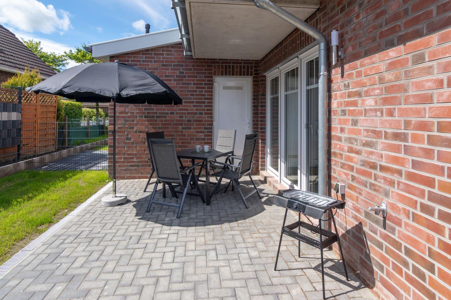Moderne Ferienwohnung Fensalir in Dornumersiel mit Terrasse, Garten und WLAN, ideal für einen erholsamen Nordseeurlaub mit Hund.