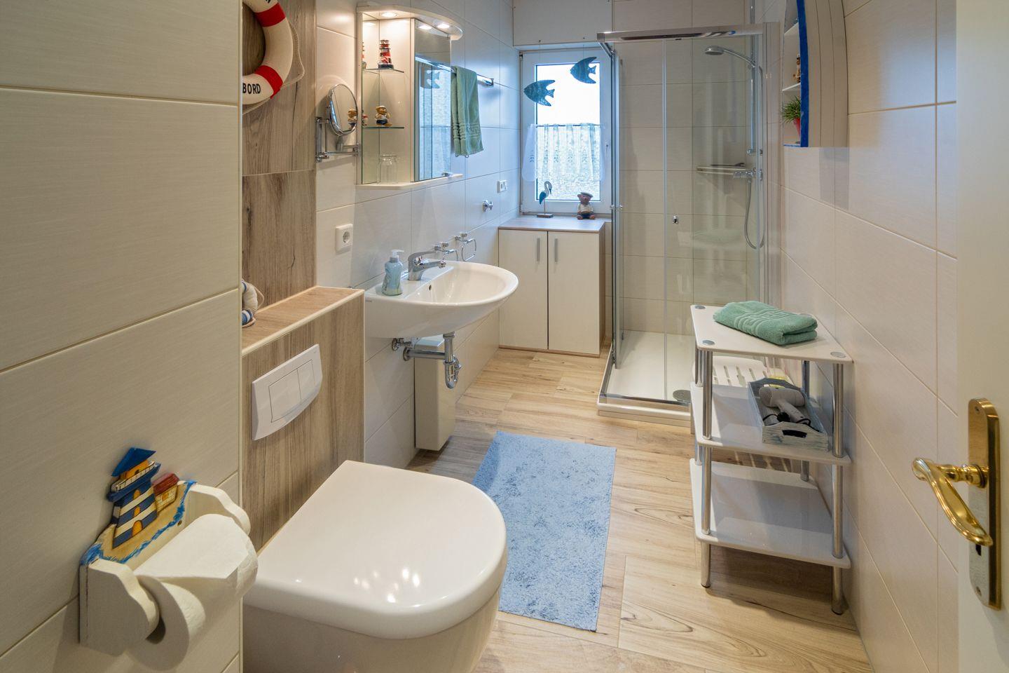 Das modern gestaltete Badezimmer bietet mit Dusche, WC und Haartrockner alles, was Sie für Ihr Wohlbefinden benötigen. Selbstverständlich ist die Ferienwohnung ein Nichtraucherobjekt und mit einer modernen Heizung ausgestattet, sodass Sie sich auch in der kühleren Jahreszeit rundum wohlfühlen können.