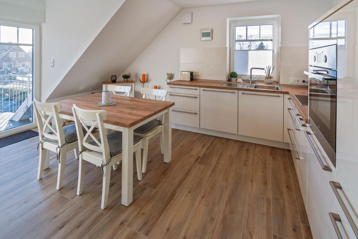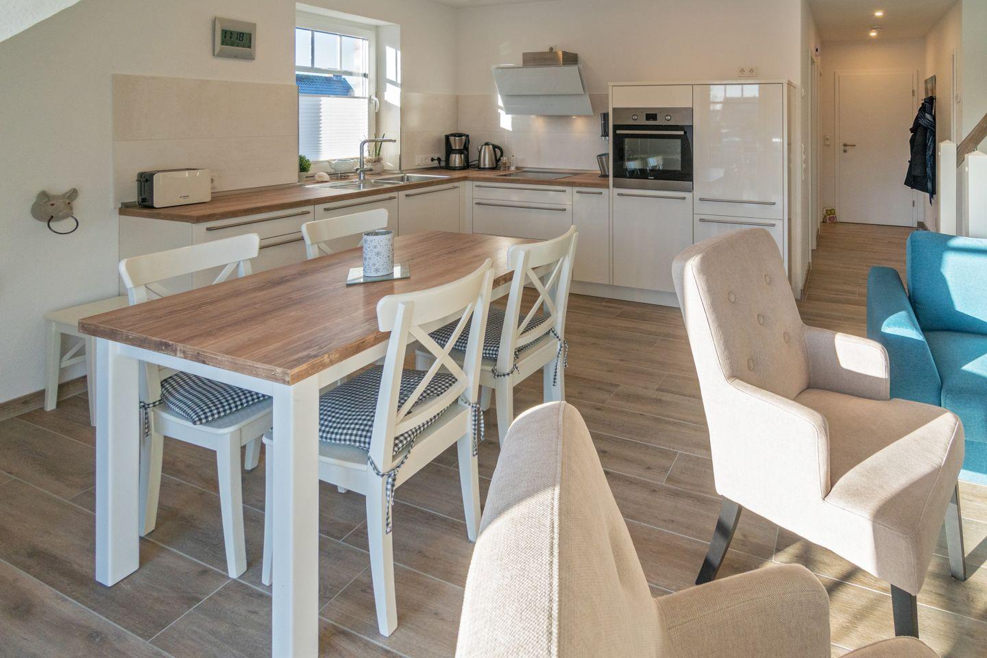 Moderne Oberwohnung Willi Wattwurm in Dornumersiel mit Balkon, WLAN und voll ausgestatteter Küche für erholsamen Urlaub an der Nordseeküste.
