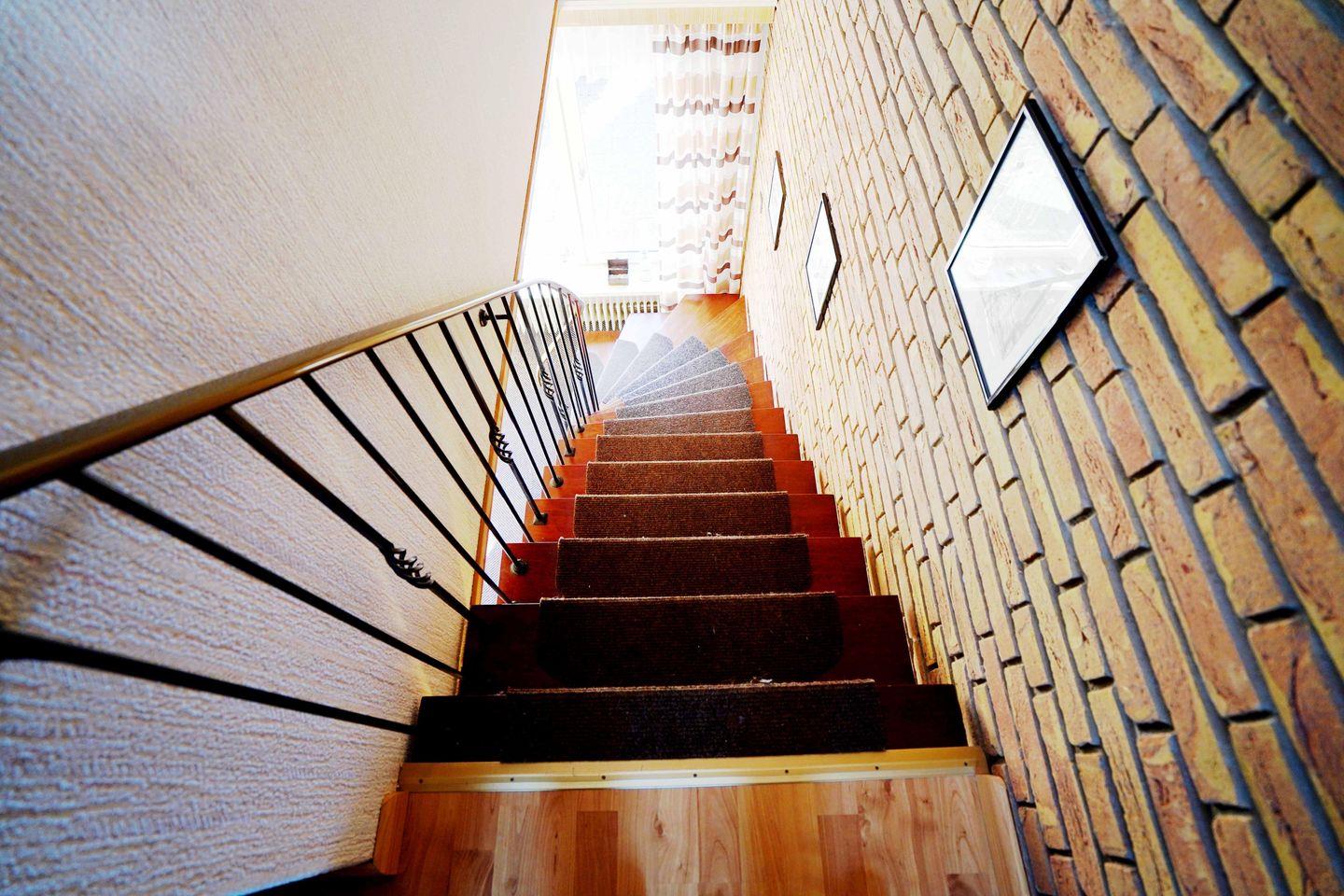 Die Haushälfte Matrosenhuus verzaubert mit einem einladenden Wohnzimmer und einer spektakulären Wendeltreppe ins Obergeschoss. Schlafen Sie unter gemütlichen Schrägen und werfen Sie einen Blick aus den Dachfenstern in den funkelnden Sternenhimmel. In der charmanten Küche zaubern Sie Ihre Lieblingsgerichte, die Sie anschließend auf der eigene Terrasse in Ruhe genießen können.