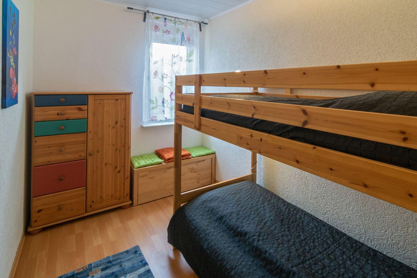 Im Inneren erwartet Sie ein liebevoll eingerichteter Wohn- und Essbereich, der zur Entspannung einlädt. Die separate, moderne Küche ist vollständig ausgestattet und bietet alles, was Sie für die Zubereitung von Mahlzeiten benötigen. Der Bungalow verfügt über drei Schlafzimmer: ein Zimmer mit einem Ehebett, ein weiteres mit einem Einzelbett sowie ein Kinderzimmer mit Etagenbett – perfekt für Familien. Das moderne Duschbad mit WC sorgt für zusätzlichen Komfort.