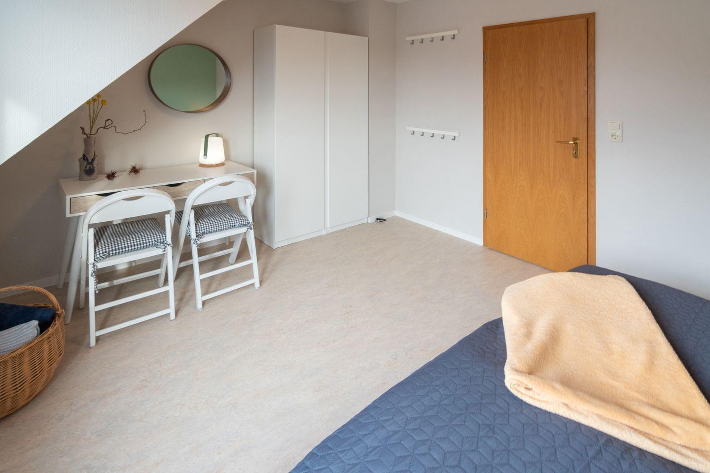 Das ruhig, aber dennoch zentral gelegene Reihenhaus bietet auf ca. 70 qm Platz für 4 Personen und ein Kleinkind. Es verfügt im Erdgeschoß über einen Wohn- und Essbereich, eine separate voll ausgestattete Küche und ein Gäste-WC. Im Obergeschoß befindet sich ein Schlafzimmer mit Doppelbett, ein weiterer Schlafraum mit zwei Einzelbetten und ein Duschbad mit WC. Die Terrasse und der Garten laden zum Entspannen ein. Zum Ferienhaus gehört auch ein eigener PKW-Stellplatz und ein Abstellraum für Fahrräder. Das WLAN steht kostenlos zur Verfügung.