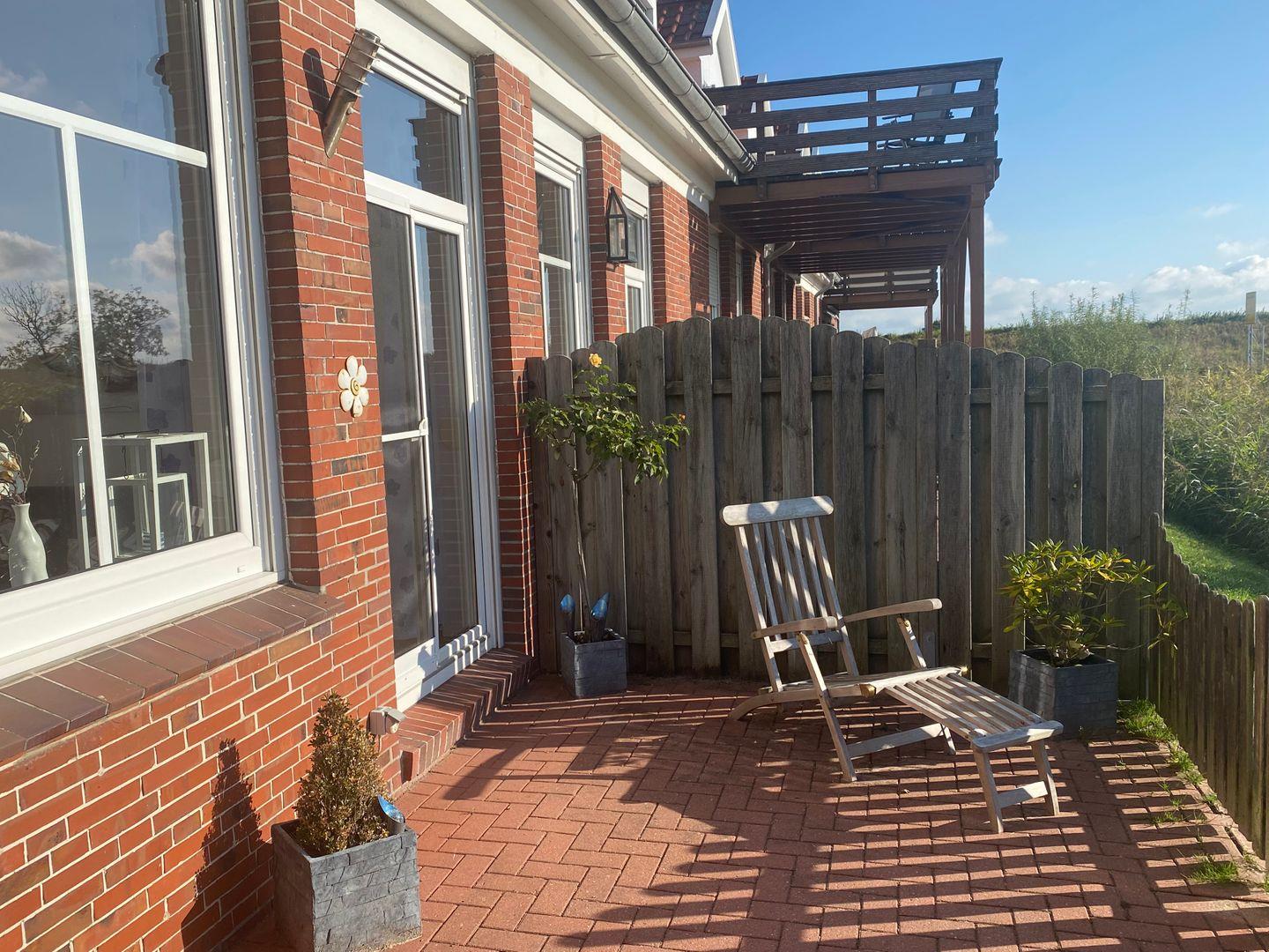 Moderne Ferienwohnung Friesenbiene in Dornumersiel, mit Terrasse, privatem Parkplatz und nur 1500 Meter vom Meer entfernt.