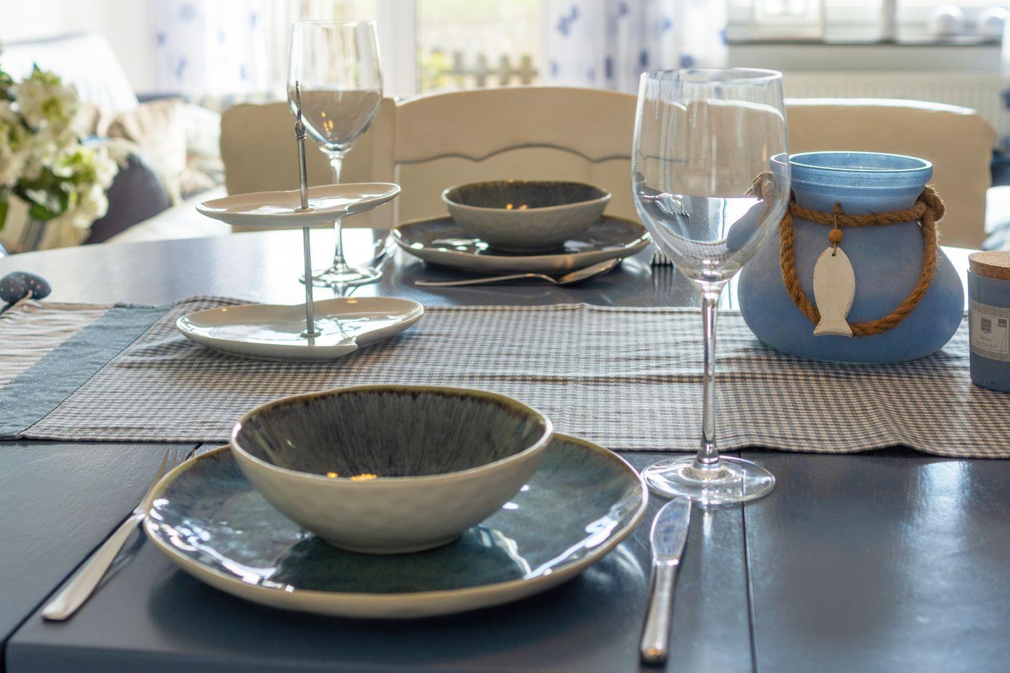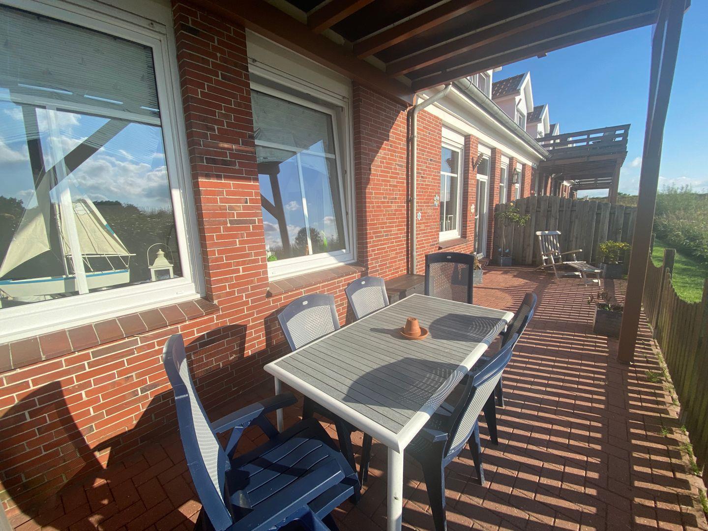 Die voll ausgestattete Küche bietet Ihnen alles, was Sie für kulinarische Köstlichkeiten benötigen – von einem Elektroherd über einen Backofen, einen Kühlschrank mit Gefrierfach bis hin zu einer Spülmaschine und einer Kaffeemaschine. Bereiten Sie Ihr Frühstück zu oder laden Sie Freunde zum Grillen auf der Terrasse ein, während Sie die frische Nordseeluft genießen. Die große, teilüberdachte Terrasse ist mit Gartenmöbeln und Sonnenliegen ausgestattet, sodass Sie in der Sonne entspannen oder die Abende beim Grillen ausklingen lassen können. Ein Elektrogrill steht Ihnen ebenfalls zur Verfügung.