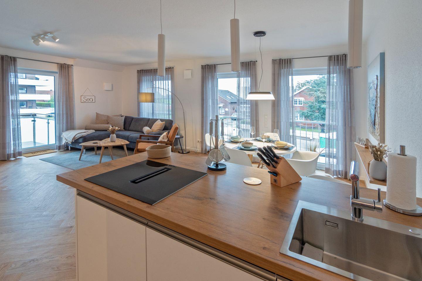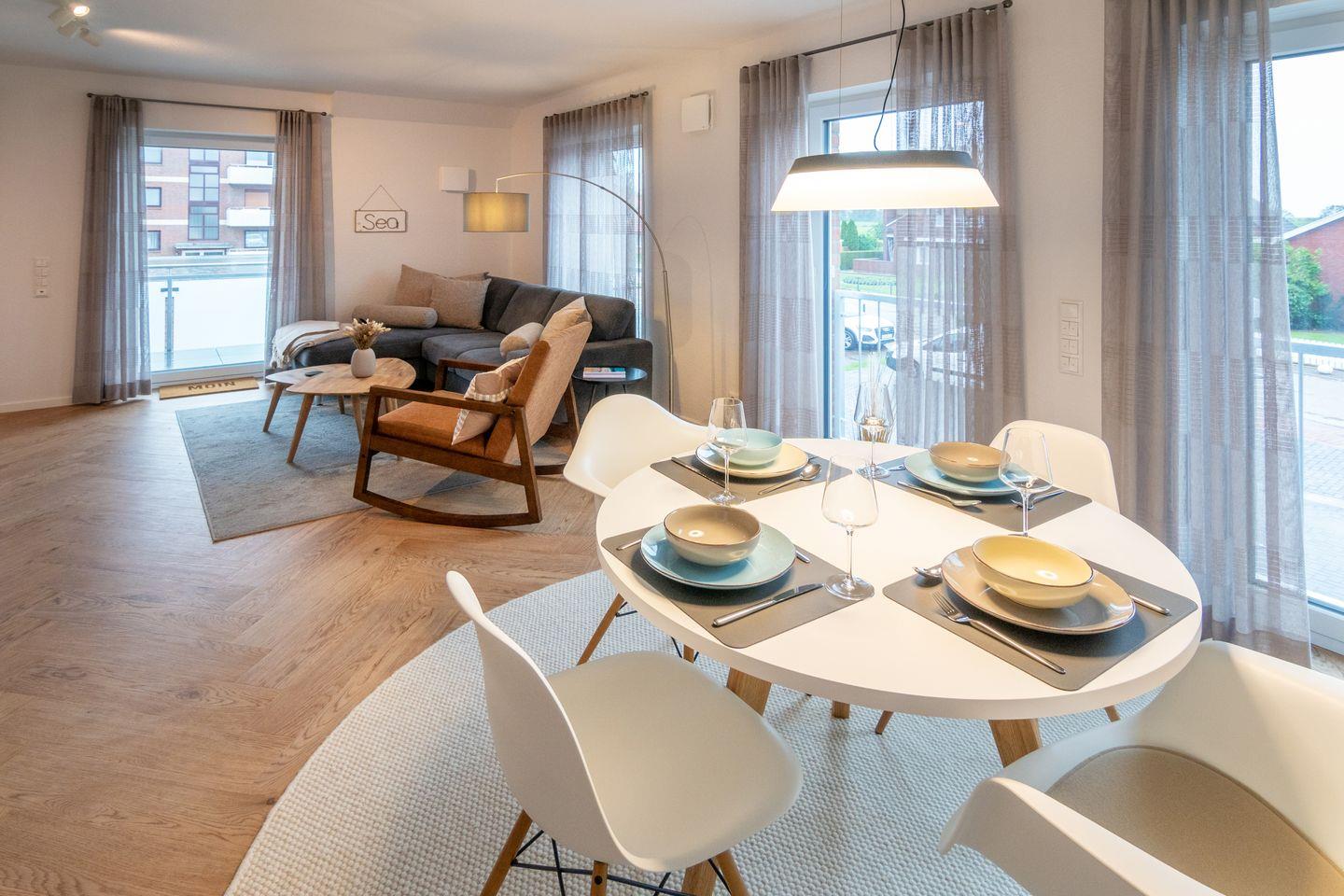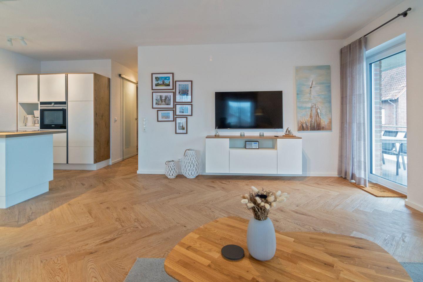 Moderne Oberwohnung mit Infrarotsauna, Balkon und E-Auto-Ladestation im ruhigen Dornumersiel.