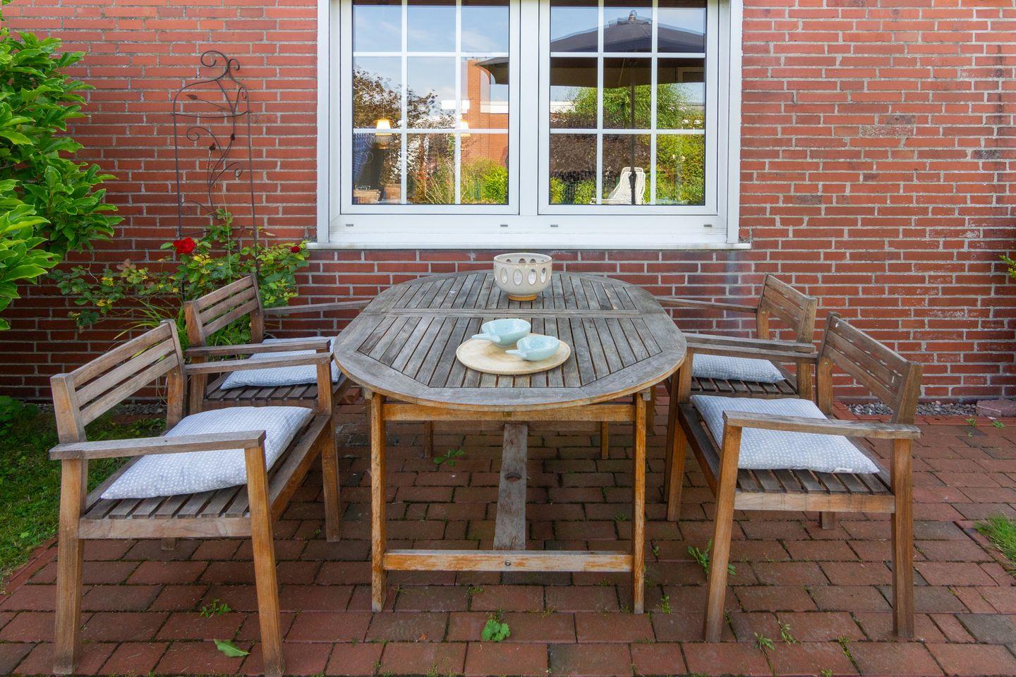 Moderner Bungalow MeerBlau in Dornumersiel, nahe Strand und Ortszentrum, mit Garten, WLAN und überdachter Terrasse.