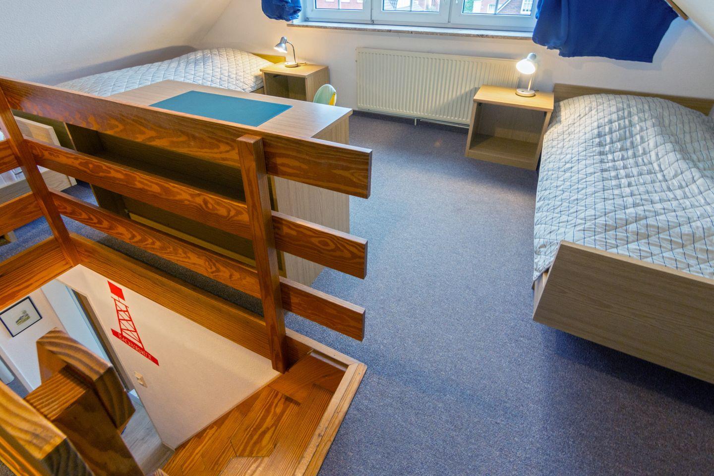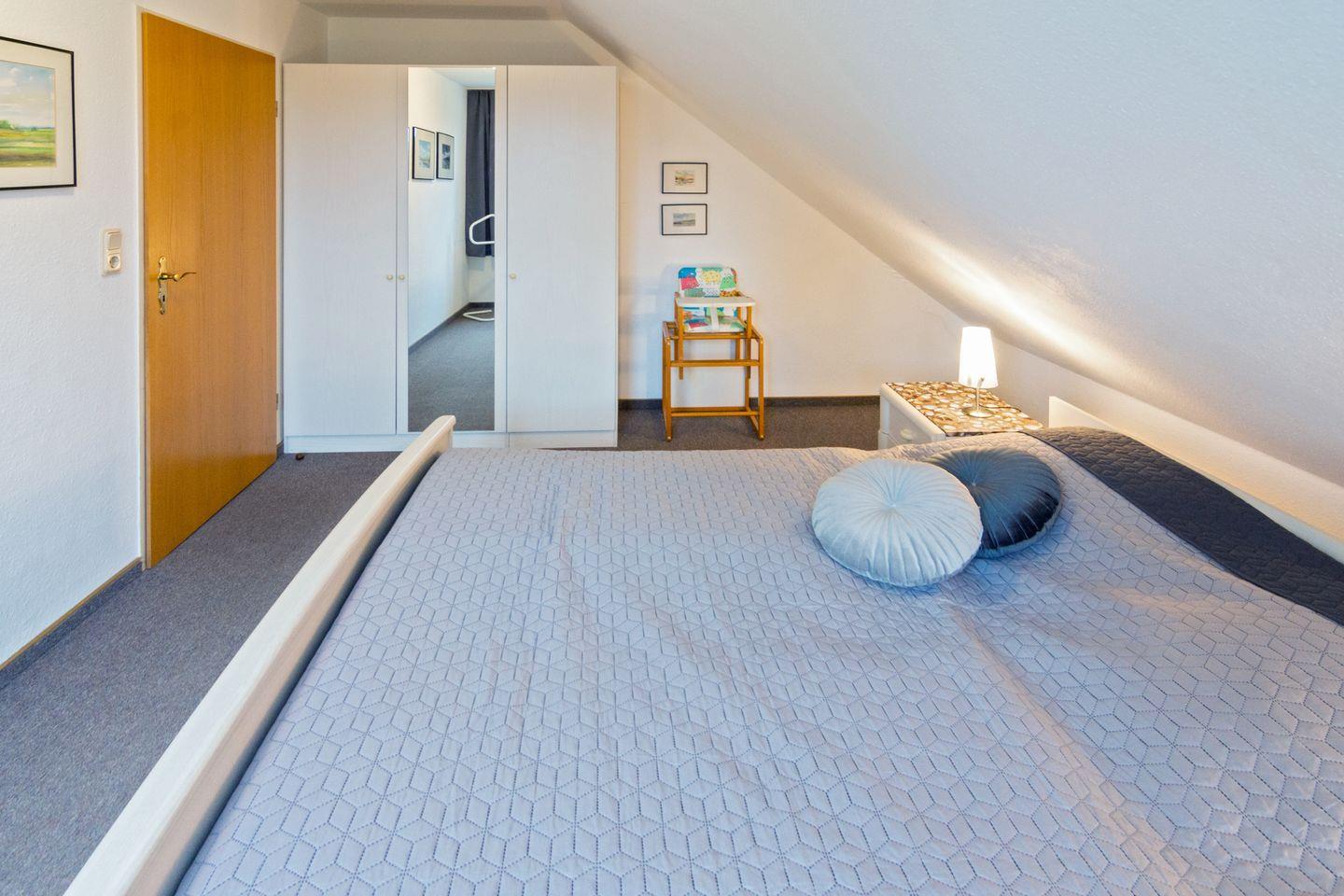 Im Obergeschoss erwartet Sie ein stilvoll eingerichtetes Schlafzimmer mit einem komfortablen Ehebett. Ein weiteres Schlafzimmer mit zwei Einzelbetten befindet sich im ausgebauten Dachgeschoss, das über eine platzsparende Raumspartreppe erreichbar ist. Hier können besonders Kinder oder Jugendliche ihre eigene Rückzugsmöglichkeit genießen.
