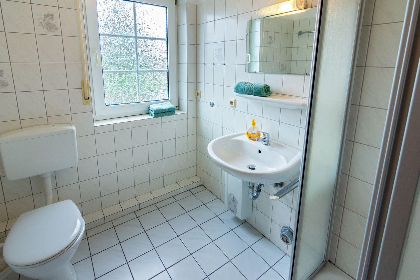 Das Duschbad mit WC und Fenster bietet neben einer Dusche auch genügend Stauraum für Ihre persönlichen Dinge.