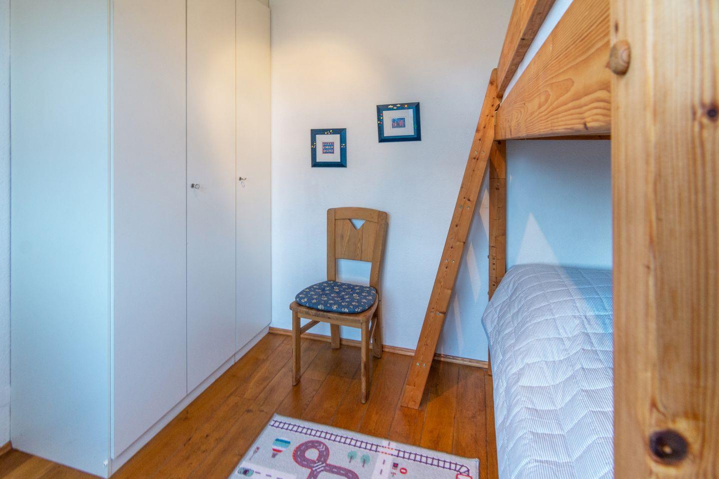 Der offene Wohnbereich mit Parkettboden lädt zum Entspannen ein – ob auf dem Sofa oder beim Essen mit Blick ins Grüne. Ein Kabel-TV und kostenloses WLAN stehen zur Verfügung. Die zwei Schlafzimmer – eines mit Doppelbett, eines mit Etagenbett – bieten erholsamen Schlafkomfort.