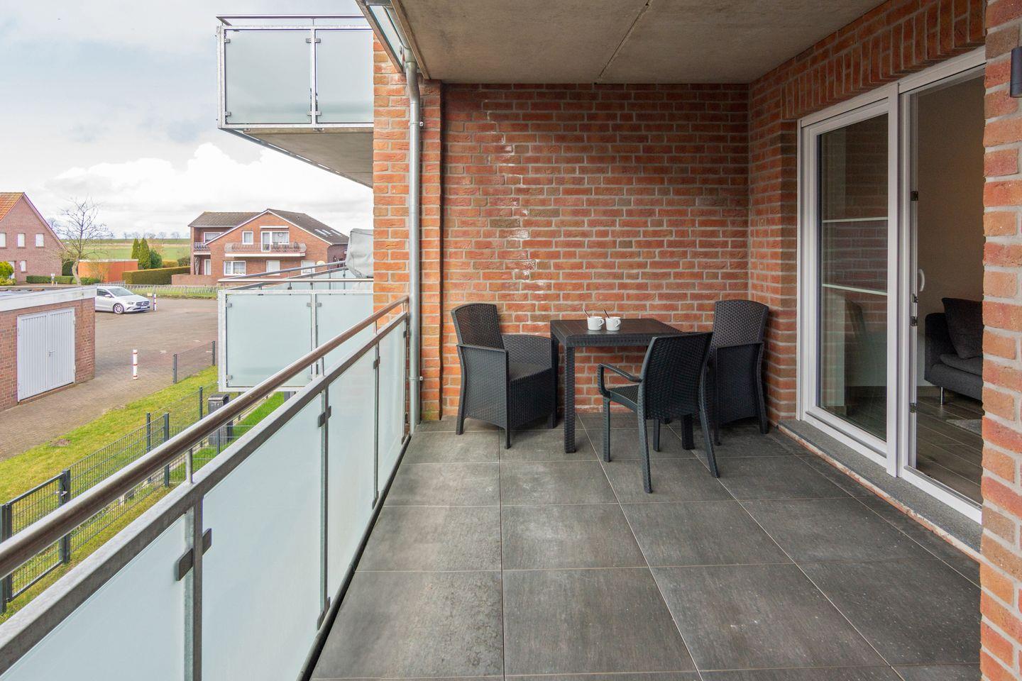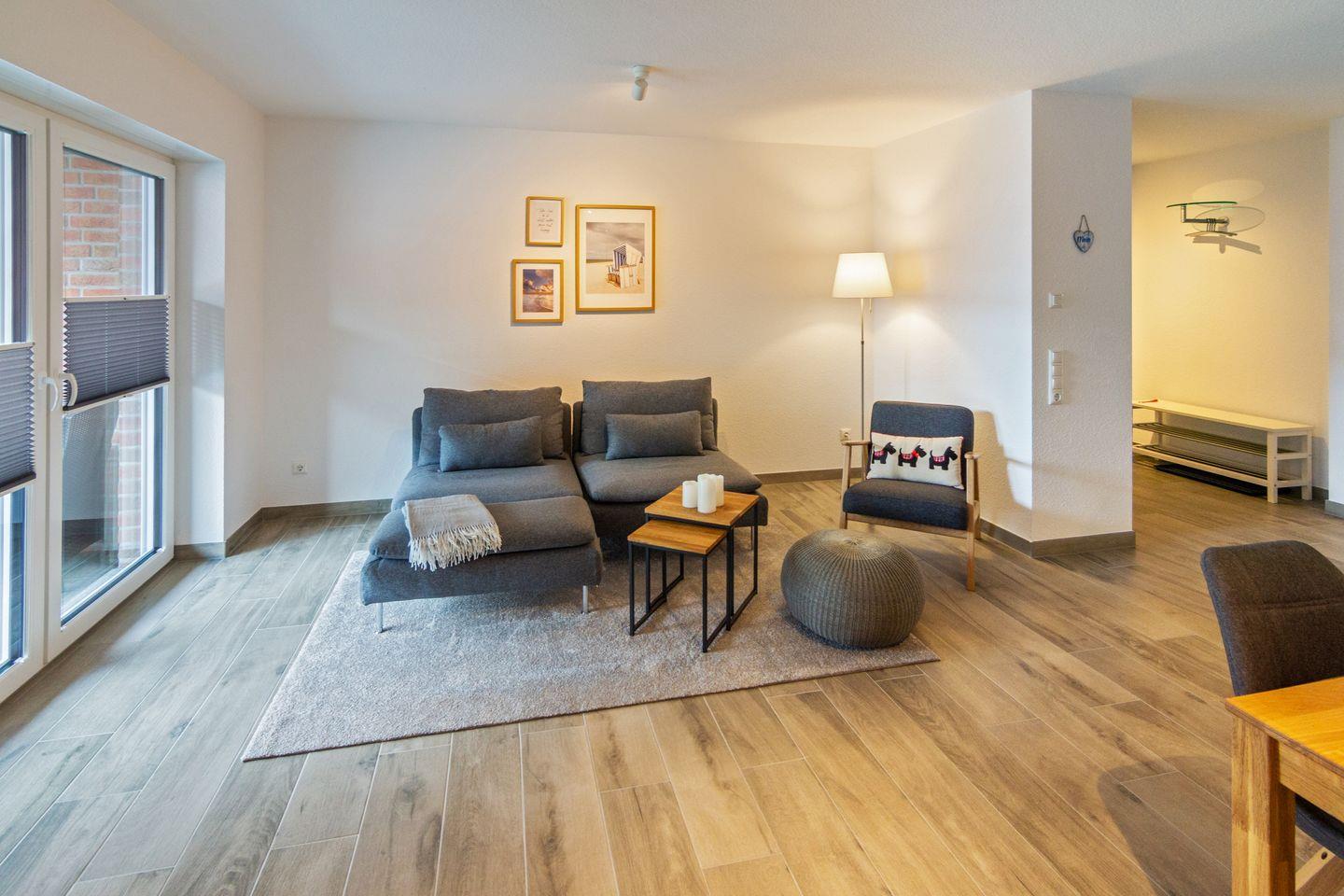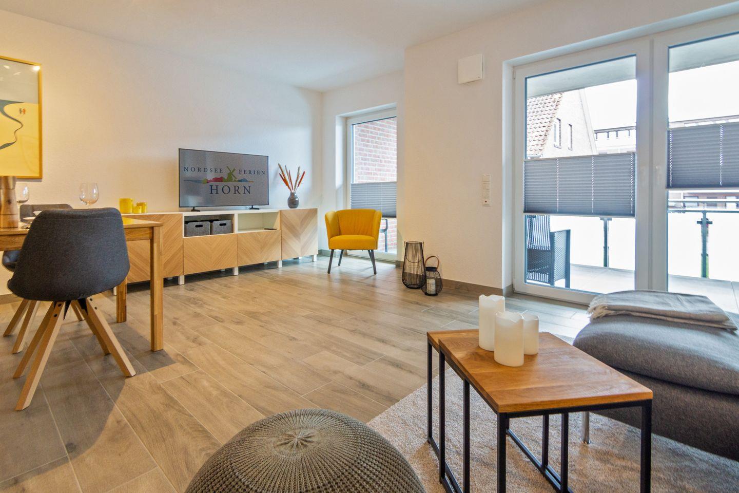 Moderne Ferienwohnung Küstenkrabbe in Dornumersiel mit Balkon, WLAN und Nähe zum Strand für entspannte Nordsee-Urlaube.