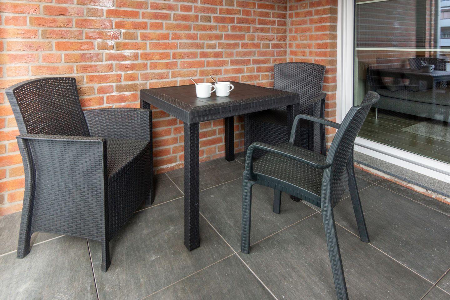 Der Balkon mit Möbeln lädt zum Verweilen im Freien ein. Die allergikerfreundliche Unterkunft bietet zudem WLAN, sodass Sie auch im Urlaub vernetzt bleiben.