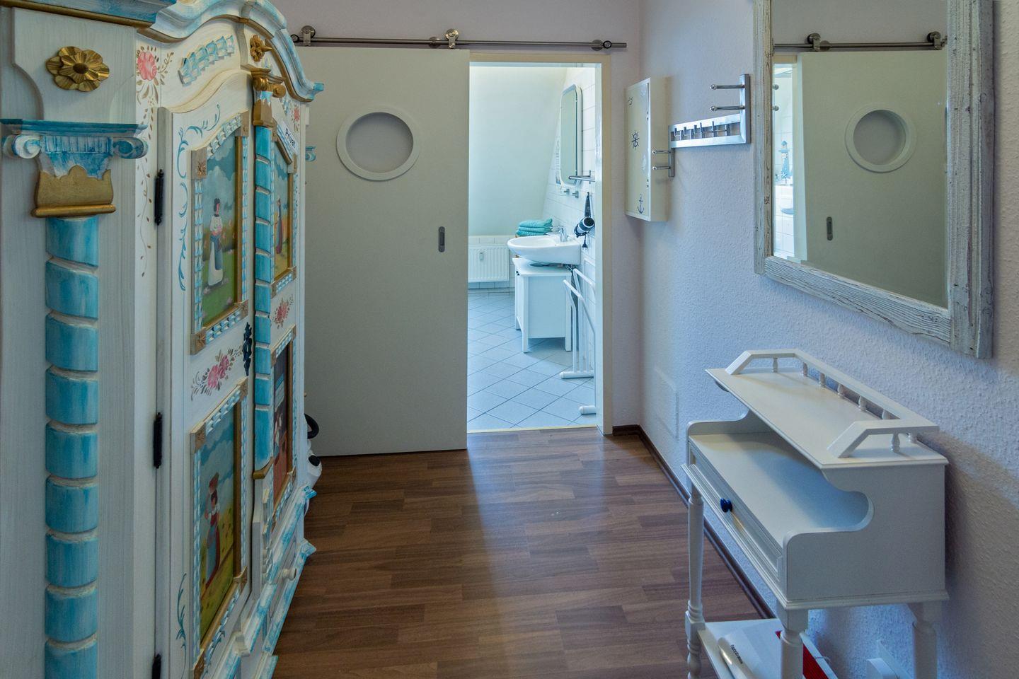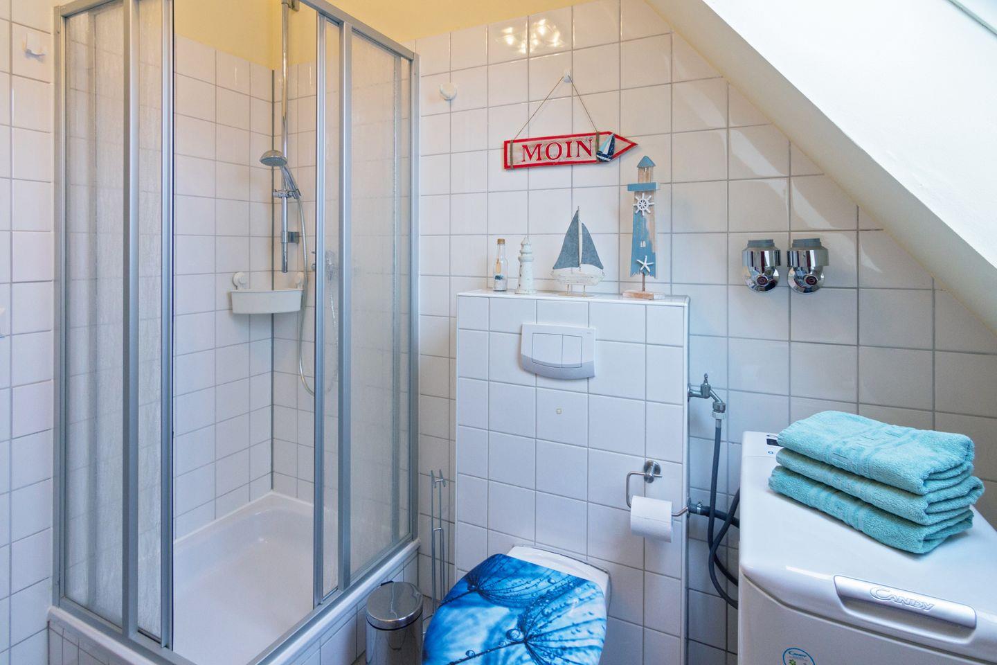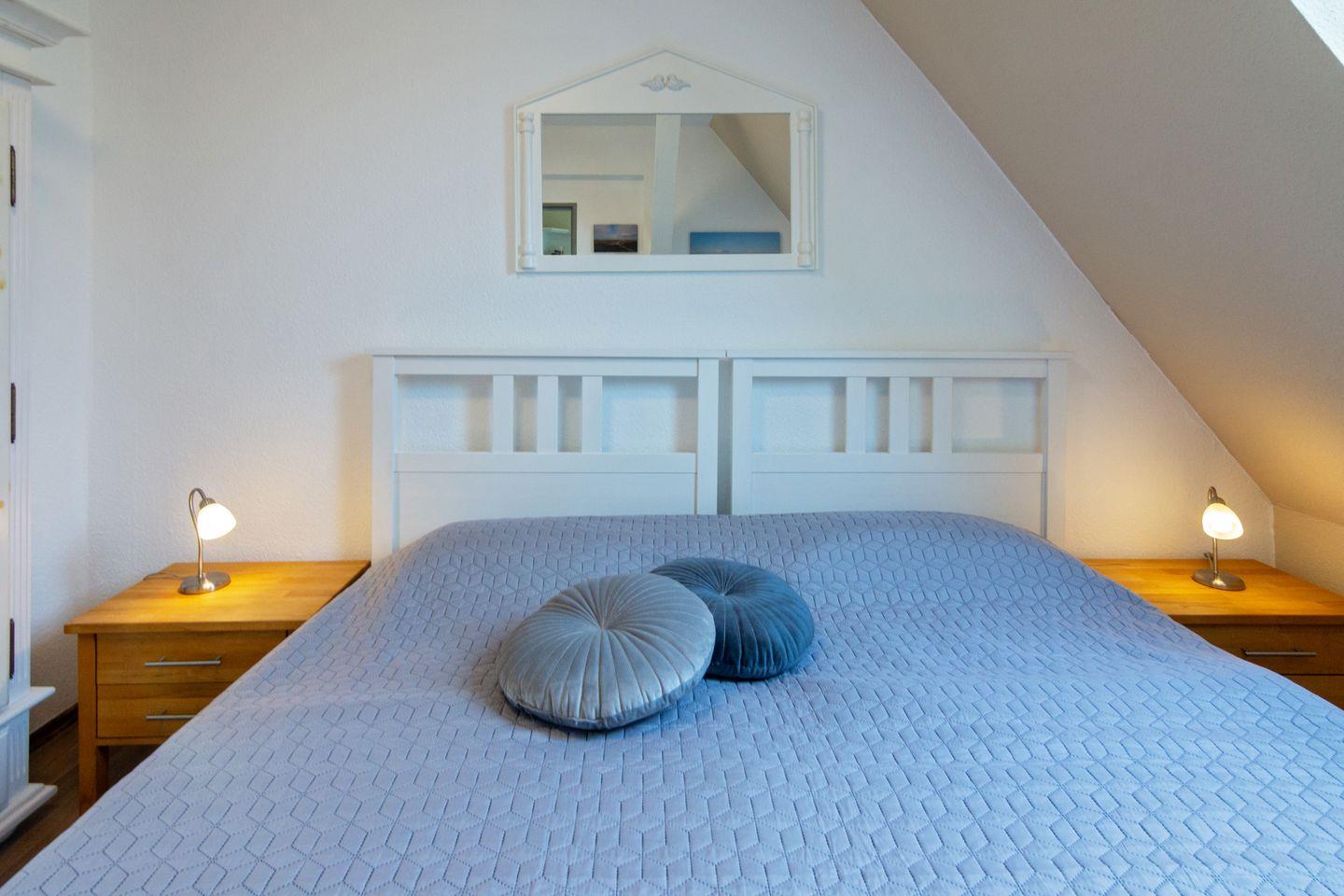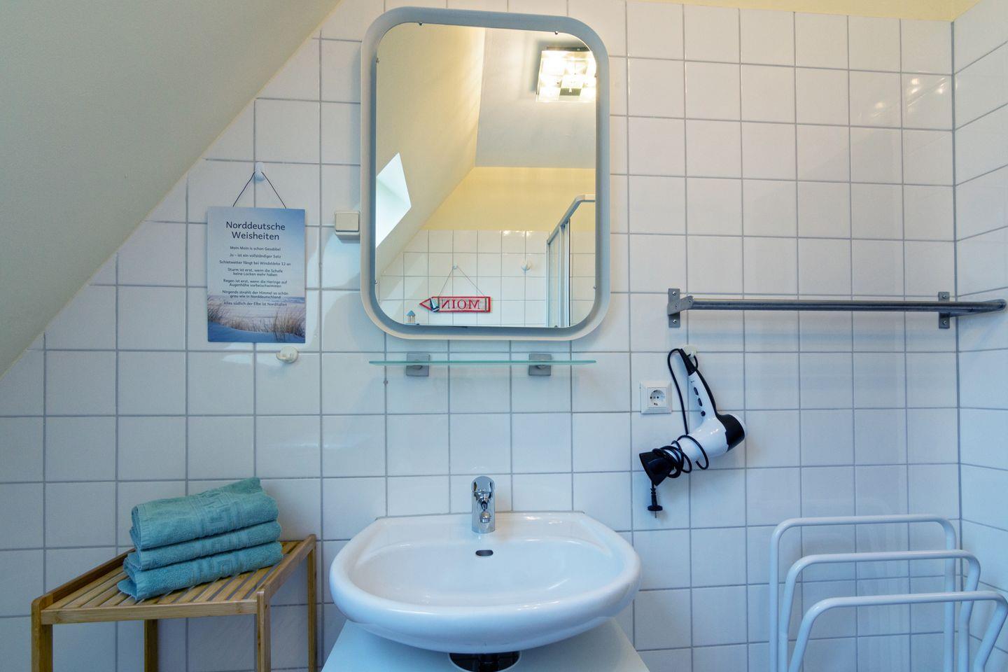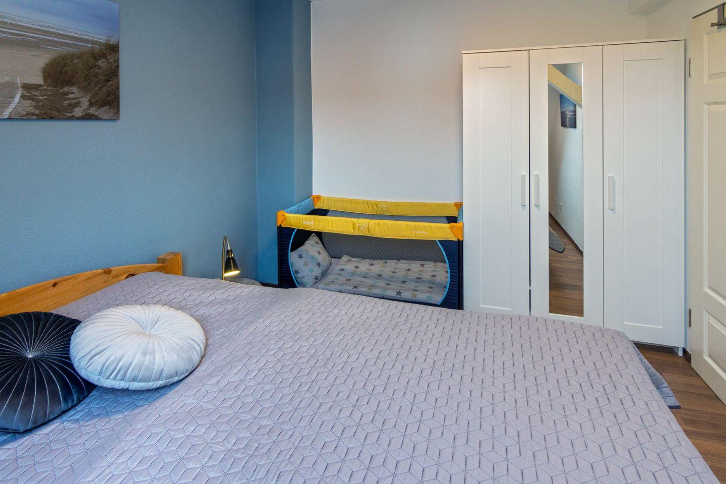 Die „Deichbrise“ verfügt über zwei komfortable Schlafzimmer mit modernem Laminatboden, die für erholsame Nächte sorgen. Ein Babyreisebett und ein Hochstuhl sind ebenfalls vorhanden, damit Sie sich um die Kleinsten nicht sorgen müssen. Das Badezimmer ist mit einer Dusche, einem Haartrockner und allen notwendigen Annehmlichkeiten ausgestattet.