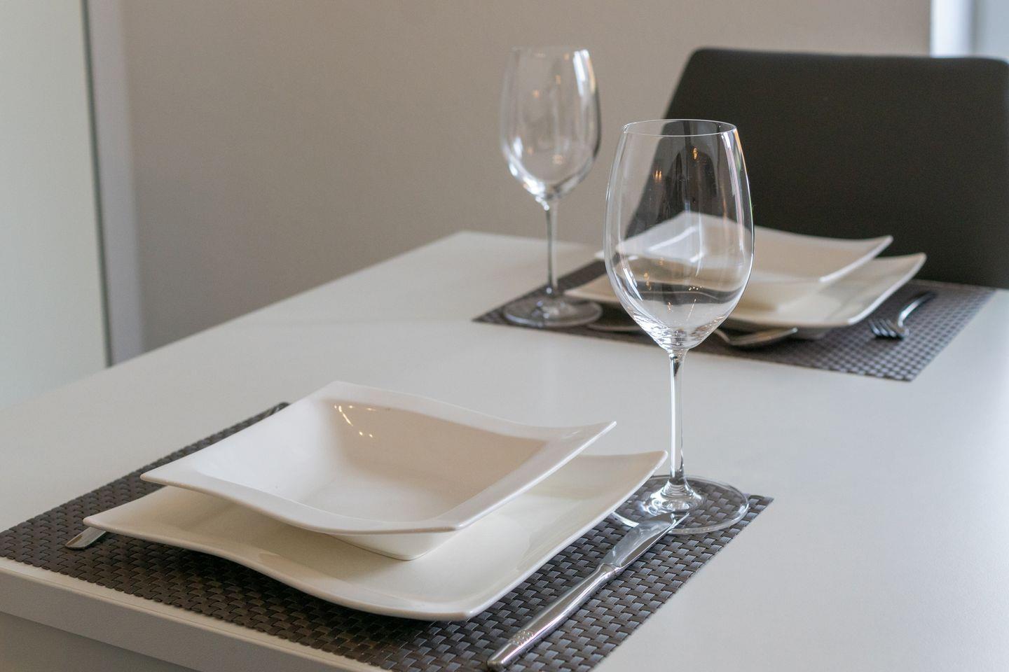 Die stilvolle Wohnung besticht durch ihr offenes Wohnkonzept: Der Wohnbereich mit gemütlichem Sofa und Satelliten-TV geht direkt in die voll ausgestattete Küche über – mit Ceran-Kochfeld, Backofen, Spülmaschine und Kühl-Gefrier-Kombi. Der Essbereich lädt zu gemeinsamen Mahlzeiten ein.