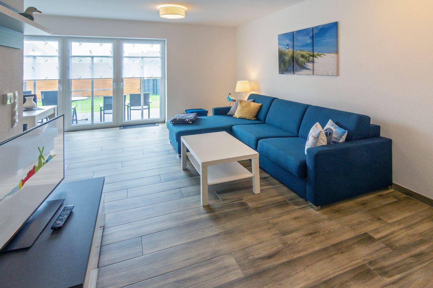 Moderne Ferienwohnung Pier 29 in Dornumersiel mit Terrasse, Garten und ruhiger Lage nahe Nordsee.