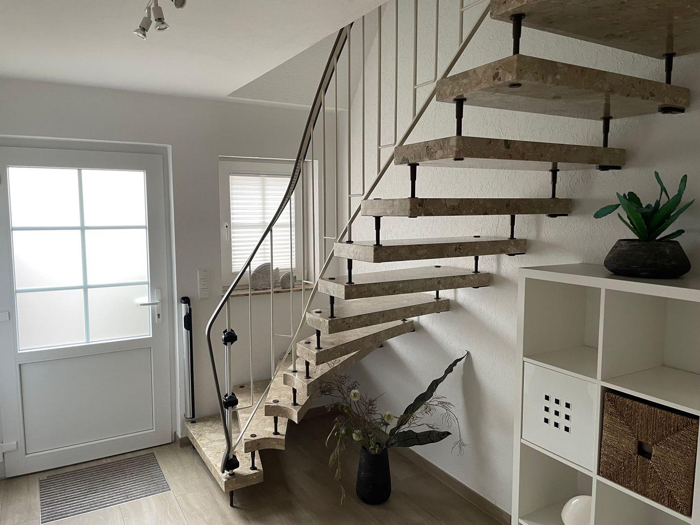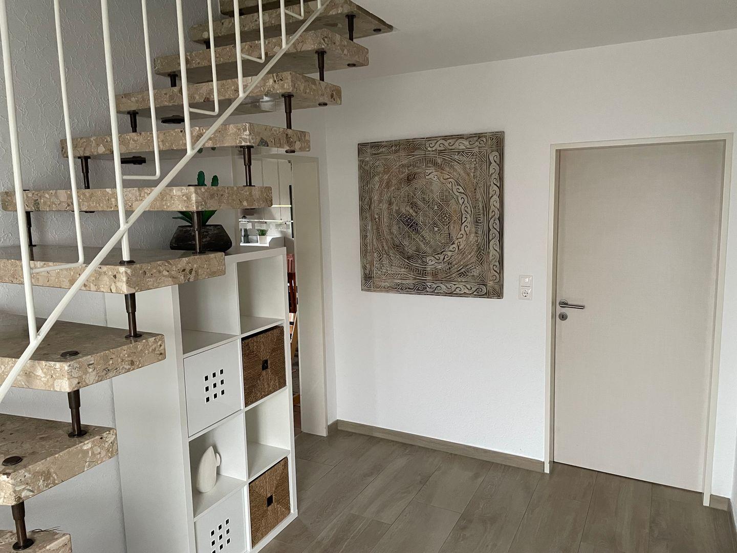 Der Außenbereich überzeugt mit gepflegtem Garten, sonnengeschützter Terrasse, Gartenmöbeln, Sonnenschirm und Grill. Zwei kostenfreie Privatparkplätze (davon einer in der Garage), Fliegengitter und Rauchmelder sorgen für zusätzlichen Komfort und Sicherheit.