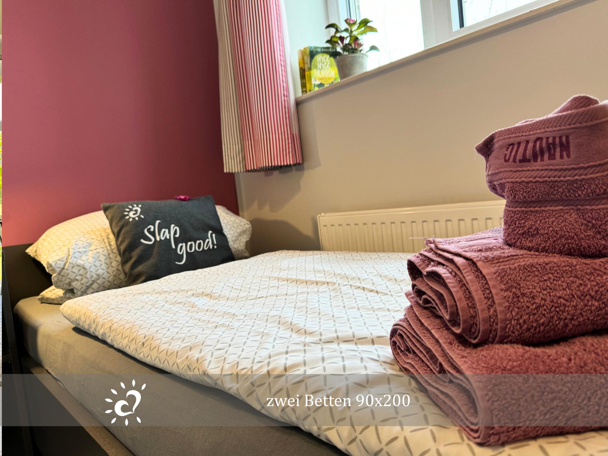 Zwei liebevoll eingerichtete Schlafzimmer mit bequemen Betten und verdunkelnden Rollläden sorgen für erholsame Nächte. Nach einem erlebnisreichen Tag kannst du es dir im gemütlichem Wohn- und Essbereich gemütlich machen oder von der Terrasse aus, den Blick auf die kilometerlange Deichlinie genießen.