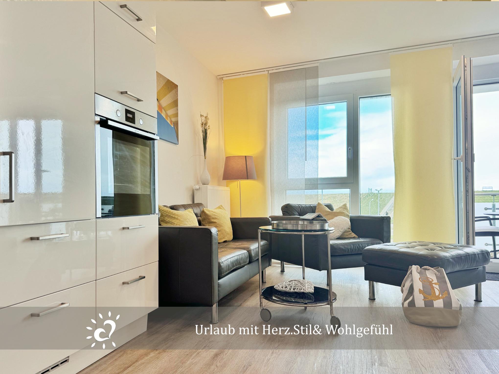 Der offene Wohnbereich mit Smart-TV lädt zu langen, entspannten Abenden ein, und ein kleiner Homeoffice-Bereich gibt dir die Möglichkeit, bei Bedarf in Ruhe zu arbeiten – mit Blick auf den Nordseedeich.