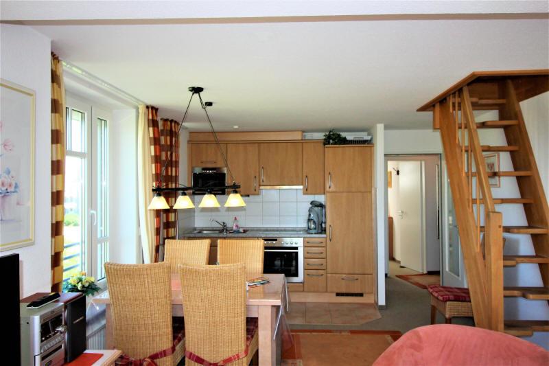 Die Küchenzeile hat einen Herd, ein 4 Platten Ceran-Kochfeld, einen Kühlschrank mit Gefrierfach, Mikrowelle und eine Geschirrspülmaschine. In der Wohnung befinden sich zwei Fernseher: im Wohnzimmer und in der Galerie unter dem Dach.