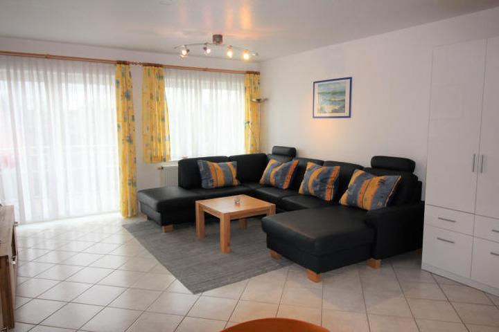 Geräumiges Wohnzimmer (ca. 28 qm Wohnfläche) mit Essplatz, 1 Schlafsofa/Wohnlandschaft im Wohnzimmer. Jetzt auch mit 80 cm Flachbildschirmfernseher.