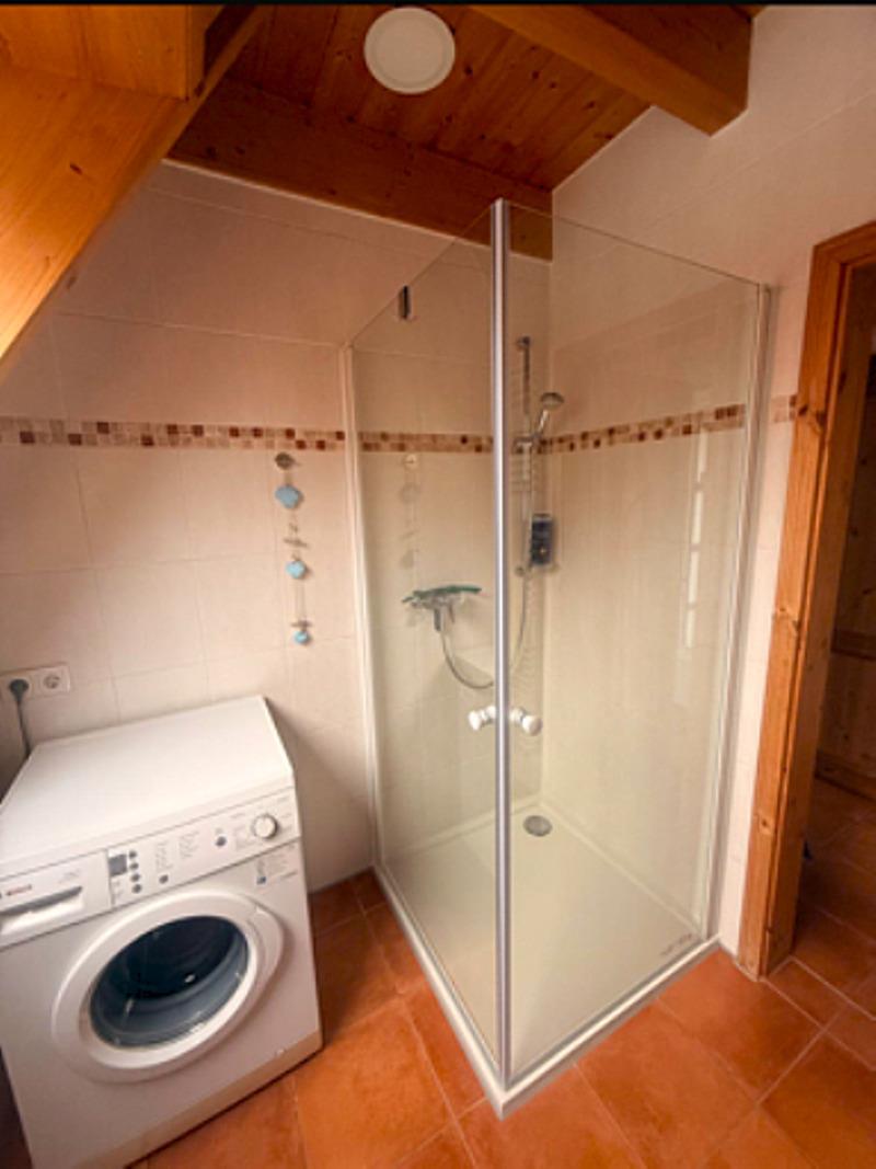 In dem Duschbad steht eine Waschmaschine zur kostenlosen Benutzung bereit.