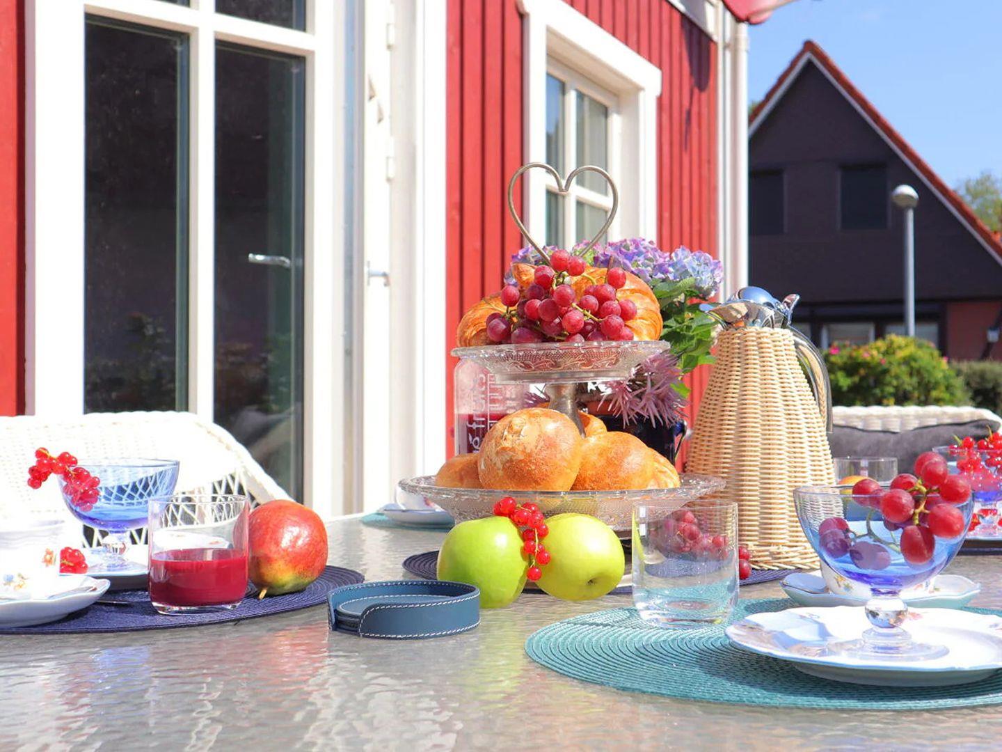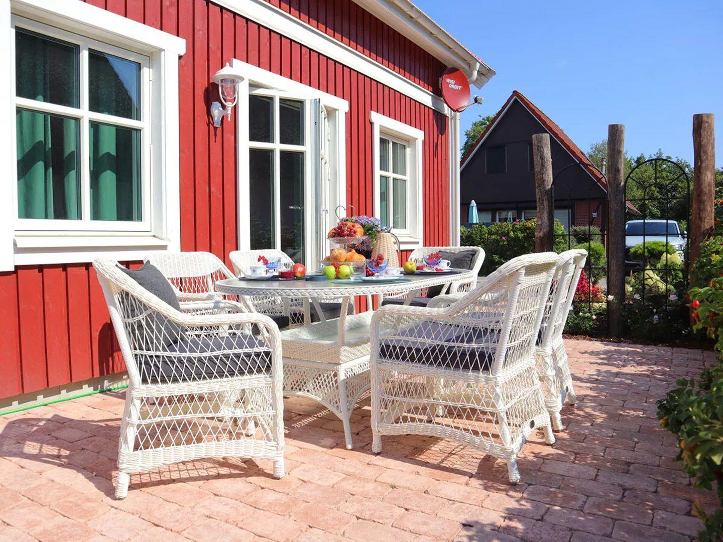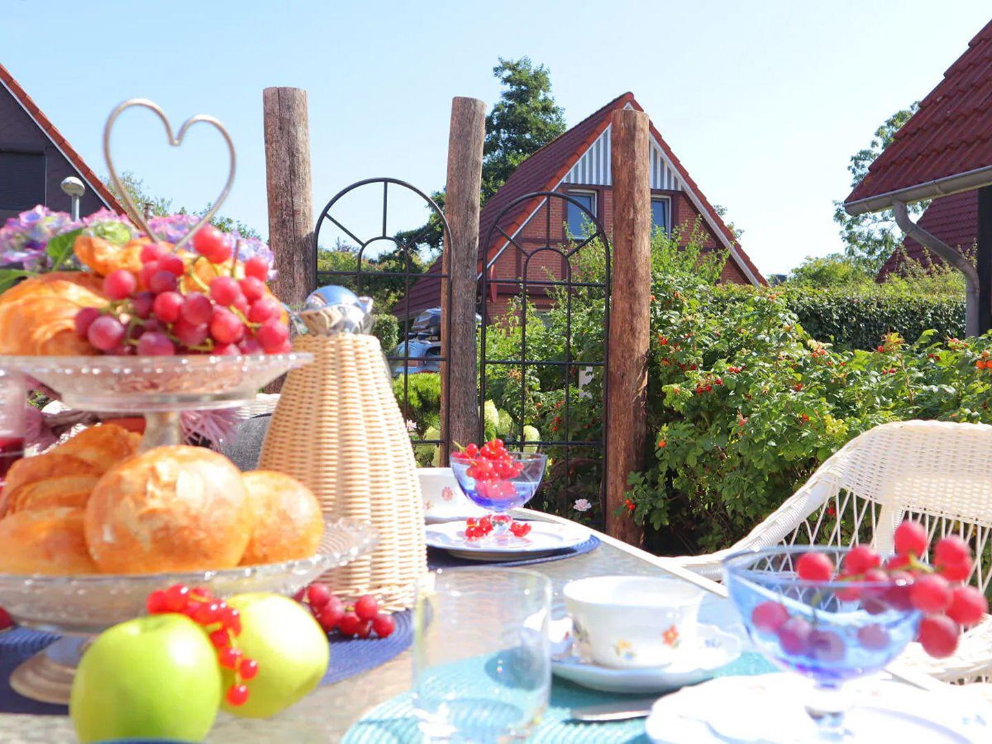 Der großzügige Gartenbereich lädt zum Verweilen ein. Genießen Sie die frische Luft auf hochwertigen Gartenmöbeln, nutzen Sie den großen Elektrogrill oder entspannen Sie bei einer Yoga-Session mit der bereitgestellten Ausrüstung. Für Ihre Abenteuer stehen Ihnen Nordic Walking Stöcke und ein Picknickkorb zur Verfügung – ideal für Entdeckungstouren an der Nordseeküste.