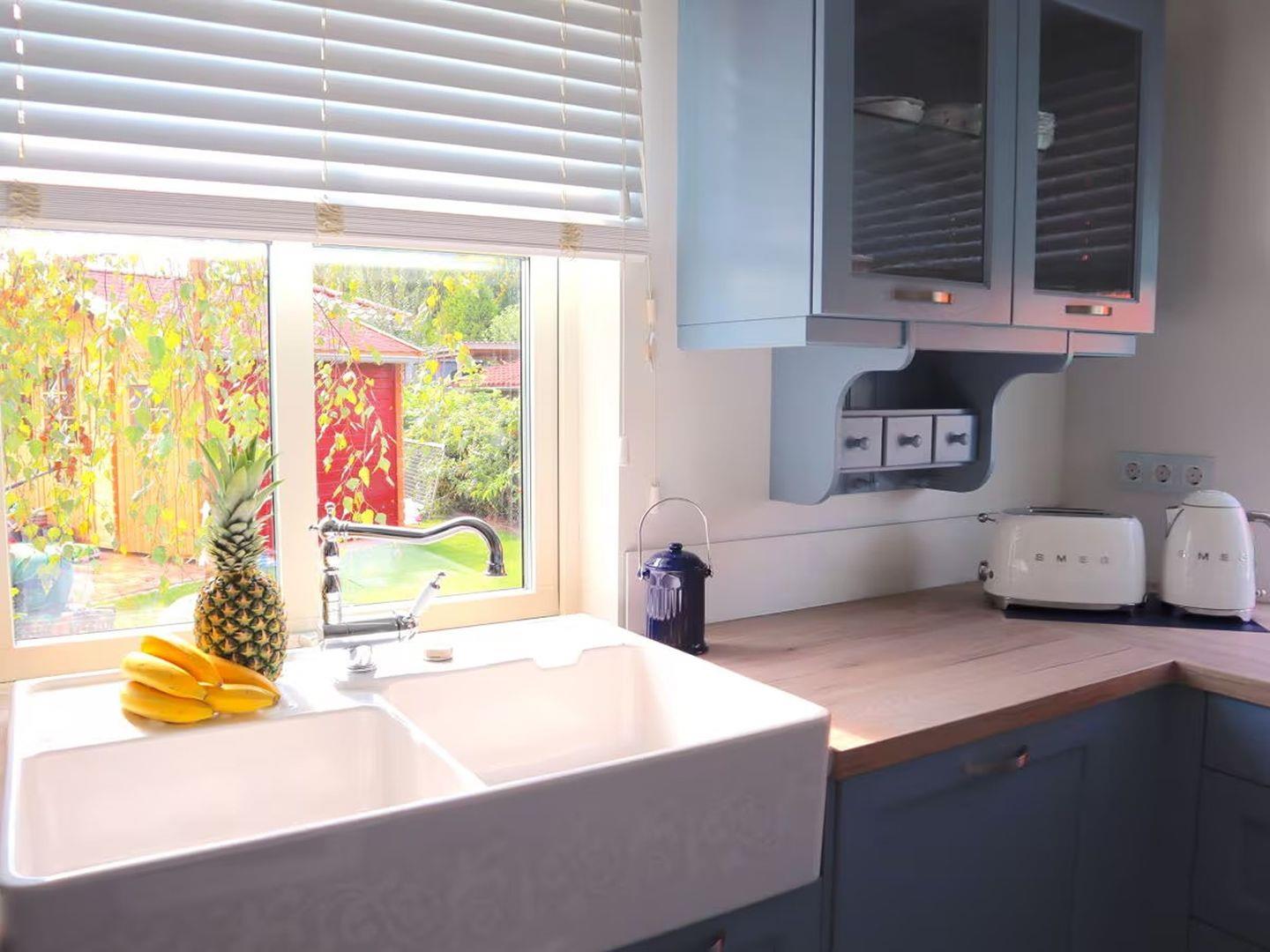 - Voll ausgestattete Echtholz-Landhausküche