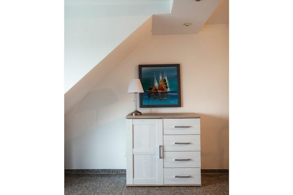 Die geräumige Ferienwohnung wurde im Januar 2020 neu eingerichtet und im oberen Bereich zusätzlich mit neuem Boden ausgestattet. Ein Strandkorb ist in der Sommersaison inklusive. Die ca. 66 qm große Komfortferienwohnung, die sich über zwei Etagen erstreckt, liegt im kleinen Fischerdorf Dorum-Neufeld, direkt hinterm Deich, in einer Ferienhausanlage nur ca. 600 Meter vom Kutterhafen und Grünbadestrand entfernt. Ebenfalls sind eine Bäckerei, ein Café, verschiedene Gastronomiebetriebe und ein Fahrradverleih (u. a.) fußläufig erreichbar. Im Kurbeitrag, der vor Ort zu zahlen ist, ist in der Zeit vom 01.05. bis 15.09. u. a. der Eintritt des "Watt'n Bad" inklusive. In der unteren Ebene der Wohnung, bis auf den Schlafbereich, mit Granitfußboden ausgestattet, befindet sich die komplett eingerichtete Küche, ein Essbereich mit Kinderhochstuhl, ein Doppelbett mit Smart TV, ein Badezimmer mit Dusche und WC. Die Wohnung hat ein mit Marmor und Granit gestaltetes Duschbad. Die Küche ist komplett mit Geschirrspüler, Mikrowelle, E-Herd mit Ceranfeld und Backofen, Toaster, (Filter-)Kaffeemaschine, Wasserkocher, Bügeleisen und Bügelbrett ausgestattet. Ein gemütlicher Balkon mit Tisch und vier Stühlen und einer ausfahrbaren Markise gehört ebenfalls zur Wohnung. In der oberen Ebene, welche Sie über eine offene Treppe erreichen, finden Sie einen mit Laminat ausgelegten Wohn-/Schlafraum mit zwei Einzelbetten, Schlafcouch, Couchtisch, Kleiderschrank, Stereoanlage, Gesellschaftsspiele, Flat Screen TV, DVD Player. Die Einzelbetten lassen sich selbstverständlich auch zu einem Doppelbett zusammenschieben. Alle Betten haben hochwertige Matratzen, Kopfkissen und Decken (neu in 2020). Wir haben uns sehr viel Mühe gegeben, Ihnen ein gemütliches zu Hause, für viele erholsame Tage an der Nordsee zu schaffen. Wir freuen uns auf Ihren Besuch!