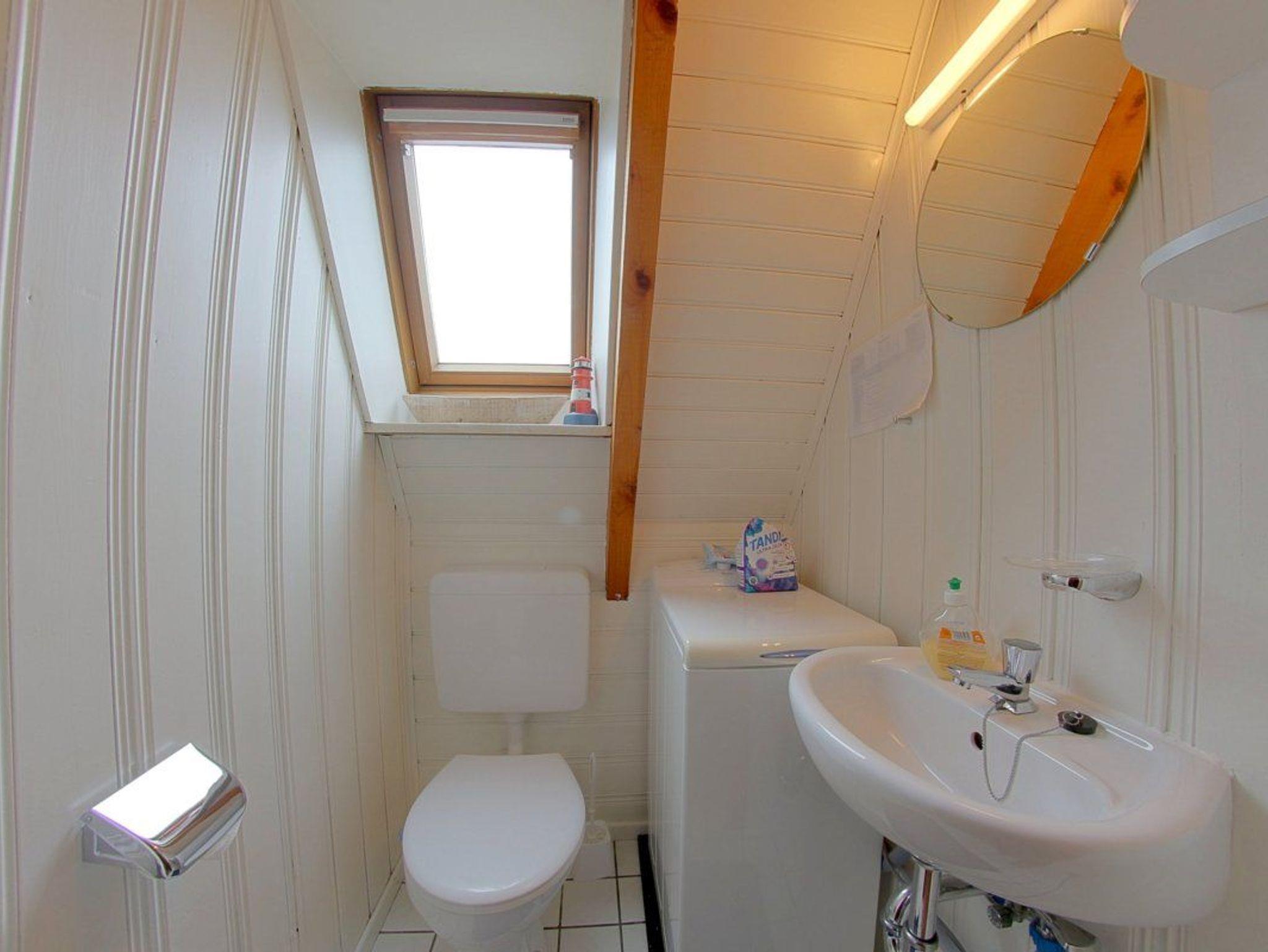 Das helle Duschbad mit Fenster und Rollo befindet sich ebenfalls im Erdgeschoss.