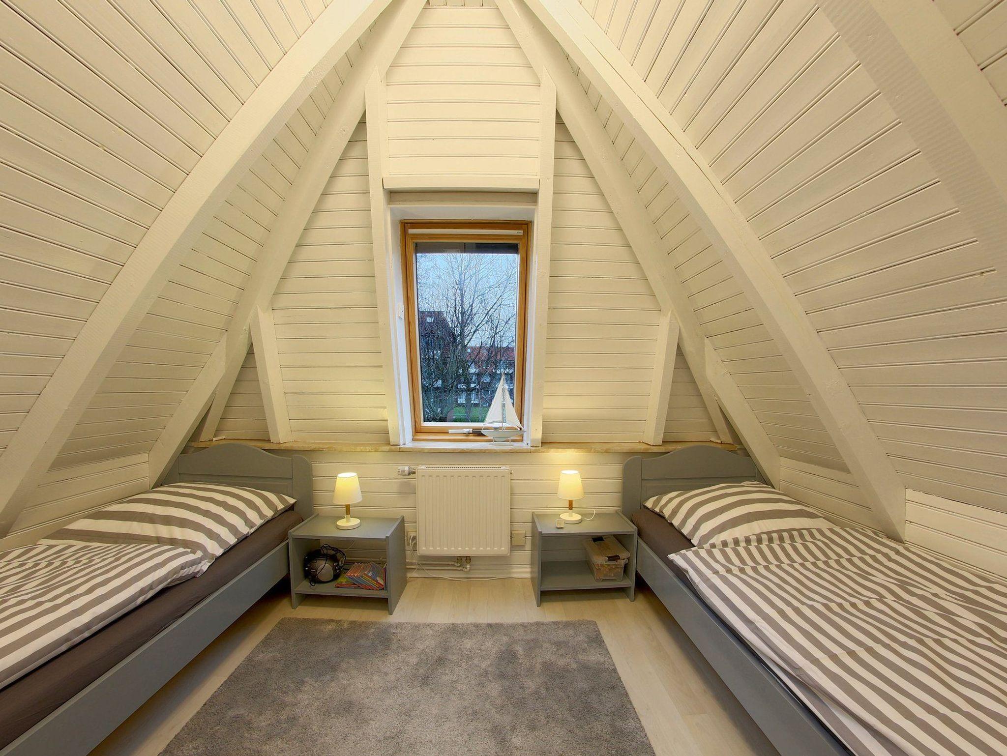 Im zweiten, kleinen Schlafraum stehen zwei freistehende Betten zur Verfügung.