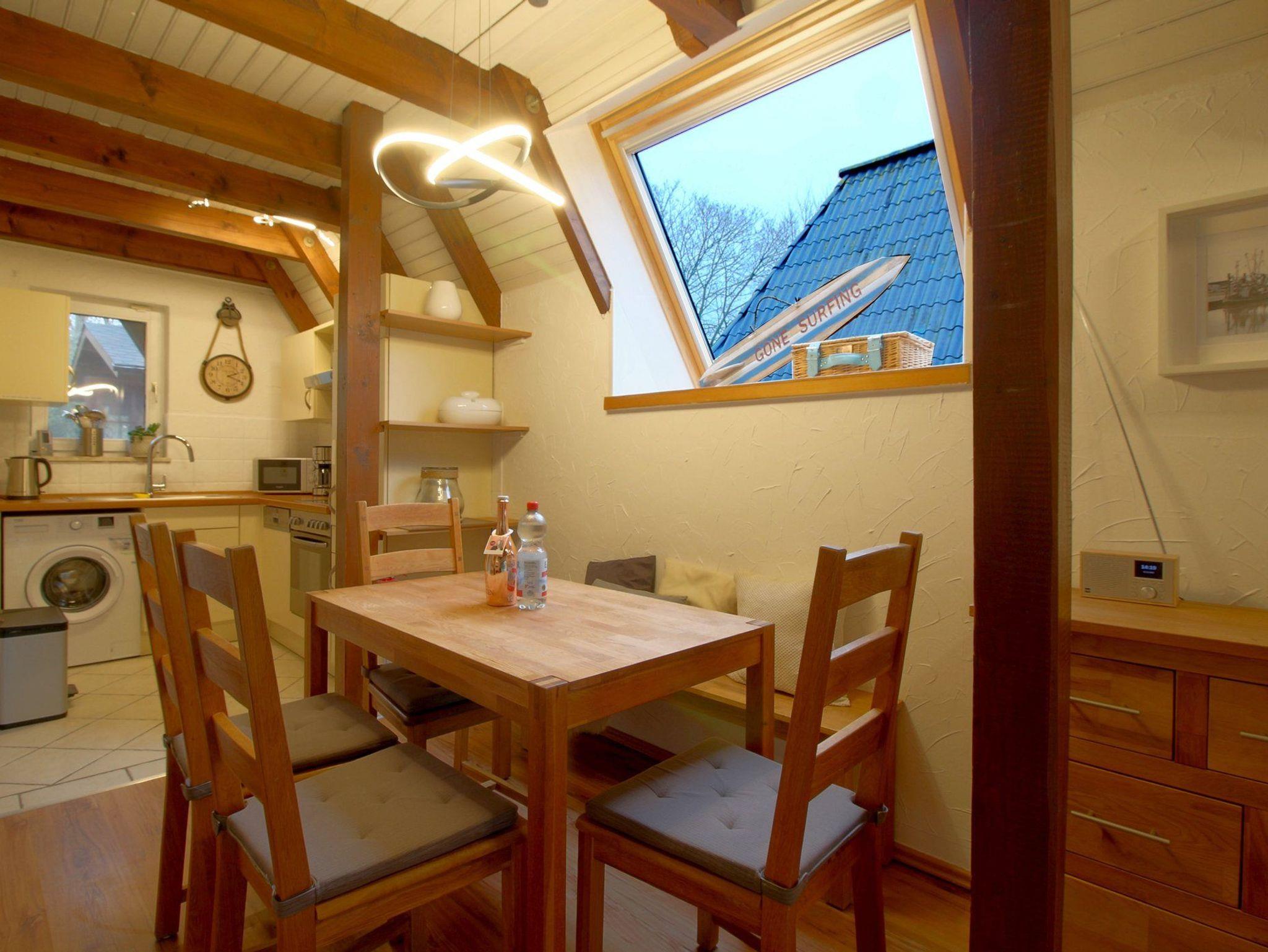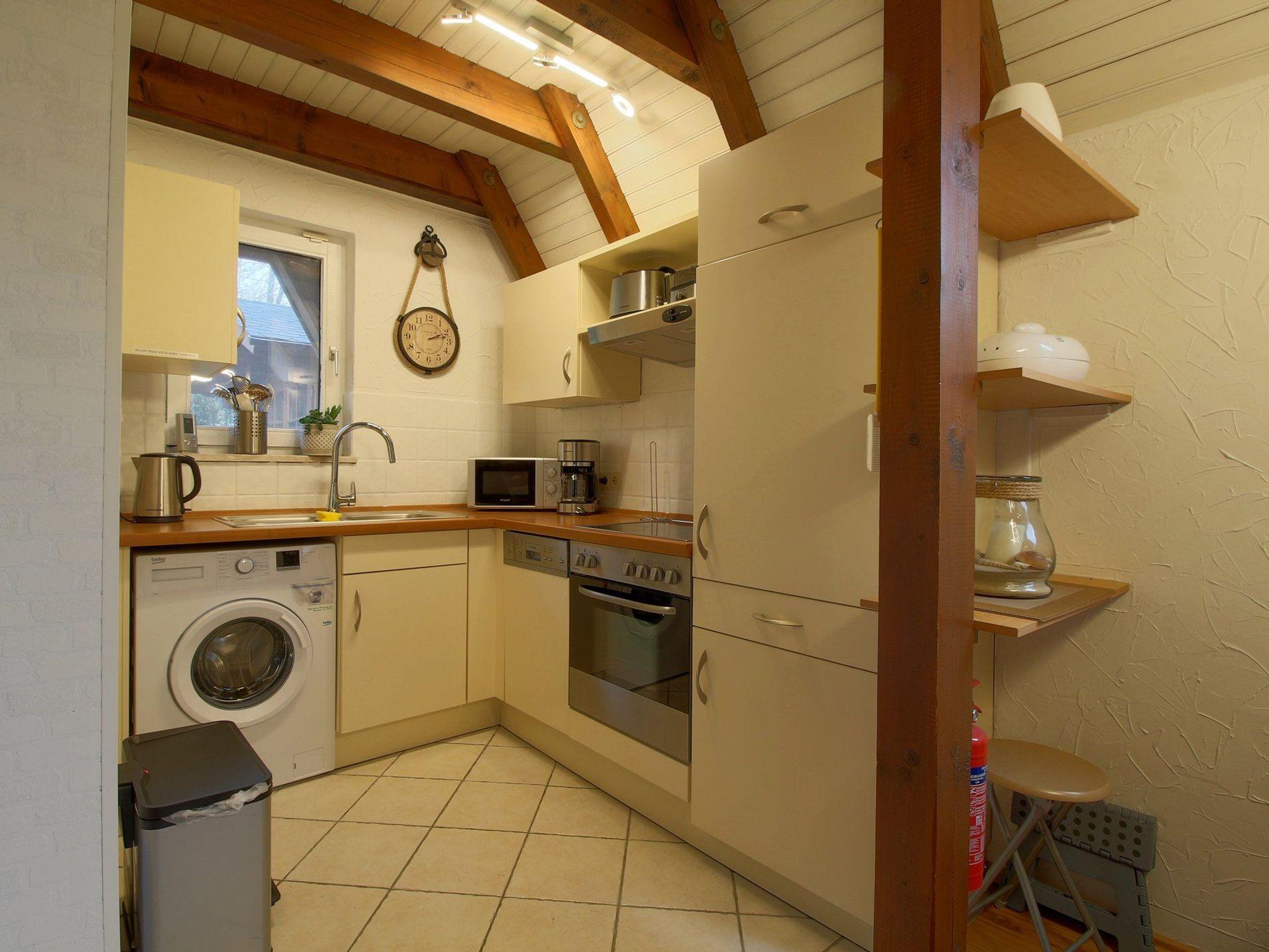 Die Küche verfügt über eine Waschmaschine, Geschirrspüler, Herd mit 4 Platten Ceranfeld und Backofen, Kühlschrank mit Gefrierfach, Mikrowelle, Toaster, Kaffeemaschine, Wasserkocher, Mixer, elekr. Küchenwaage, Eierkocher sowie Geschirr und Gläser für jeden Anlass. Auflaufformen, Backformen, Töpfe, Pfannen und alles was zum Zubereiten von Speisen benötigt wird, steht für Sie bereit.