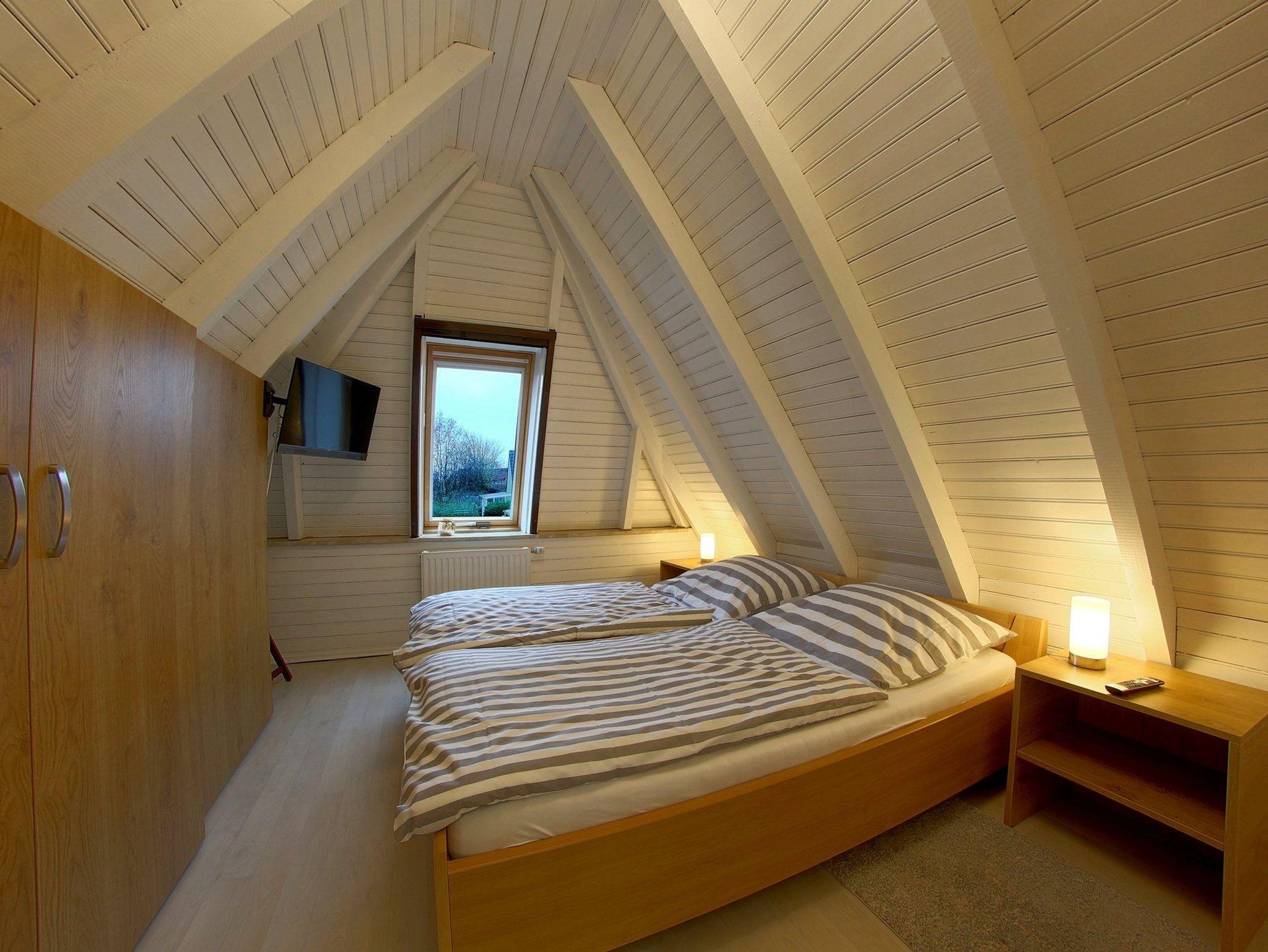 Jedes Bett hat ein Kopfkissen sowie ein Oberbett und ist mit antiallergischen Bezügen bezogen. Alle Schlafräume haben lichtundurchlässige Velux Verdunklungsrollos.