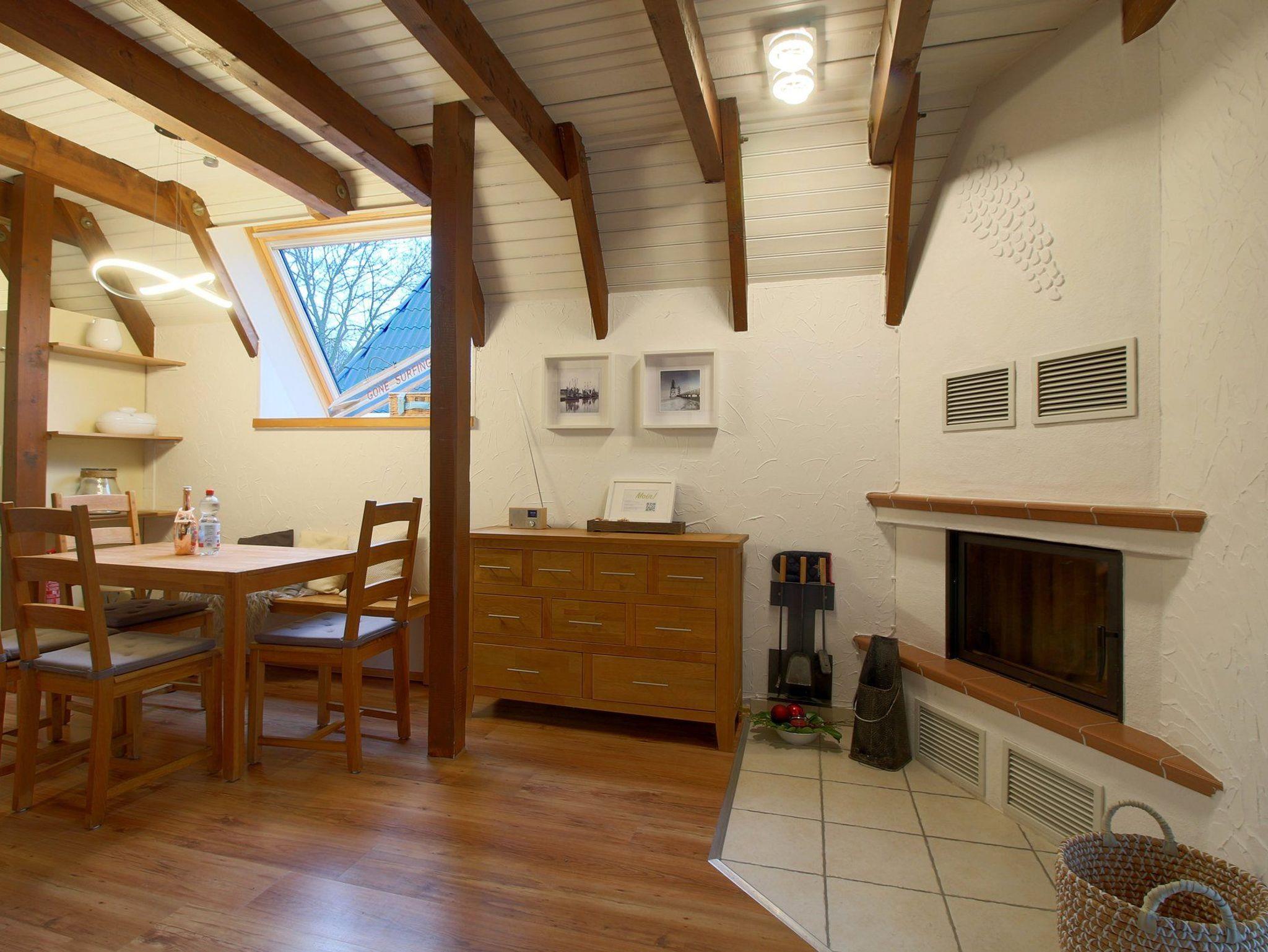 Kamin, Kostenloses WLAN, bequemes Sofa mit zwei Relax Sesseln, helle freundliche Sitzecke mit vier Stühlen, Gesellschaftsspiele und Bücher für Erwachsene und Kinder, Full-HD TV