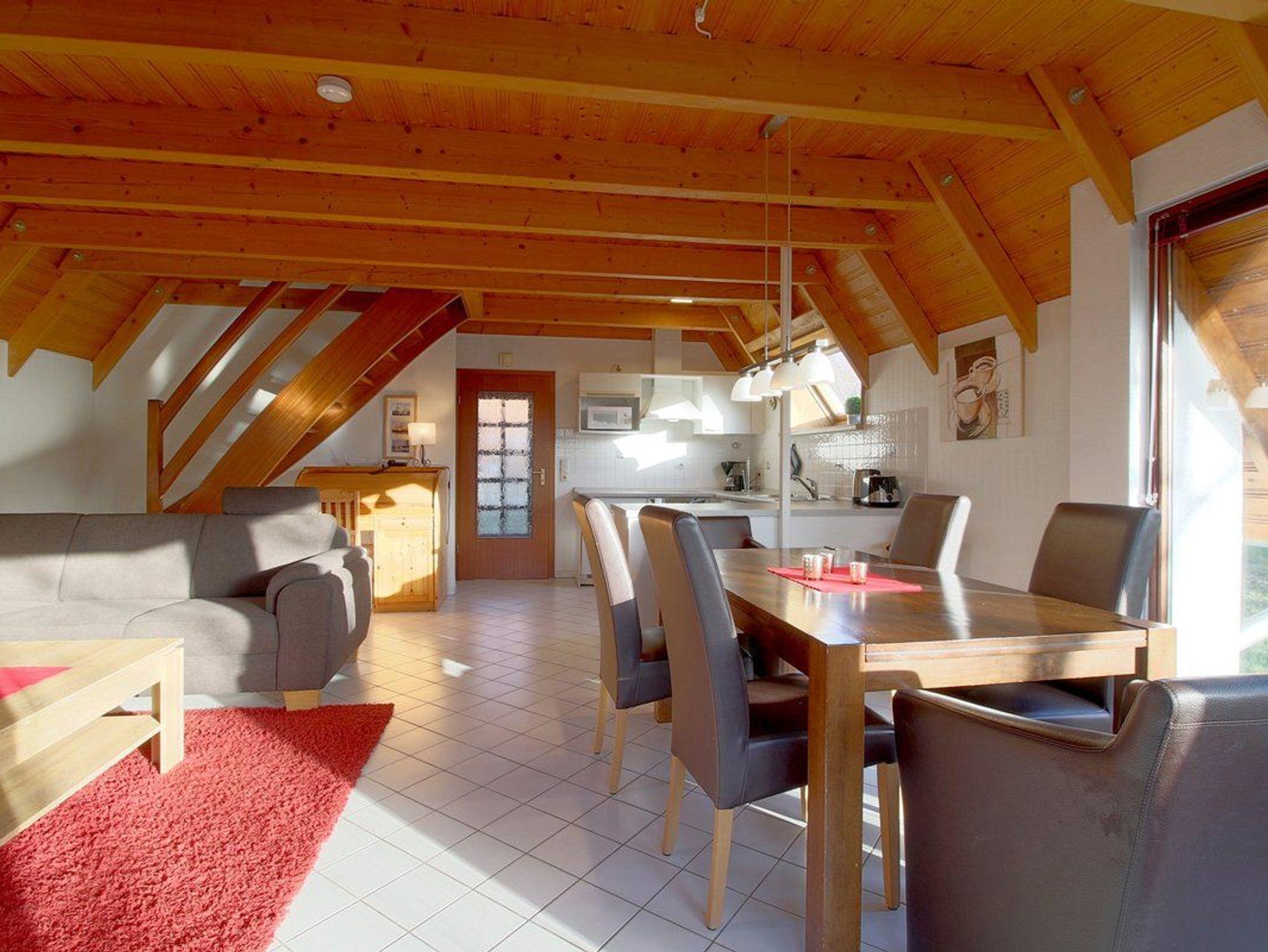 Das Ferienhaus besteht aus einem großzügigen Wohn-/Essbereich mit moderner Einbauküche, Esstisch mit Stühlen und einem schicken modernen Wohnbereich zum Wohlfühlen. Ein modernes Duschbad befindet sich im Erdgeschoss. Das gesamte Erdgeschoss ist mit hellen Fliesen ausgestattet. Kostenloses W-LAN ist vorhanden.