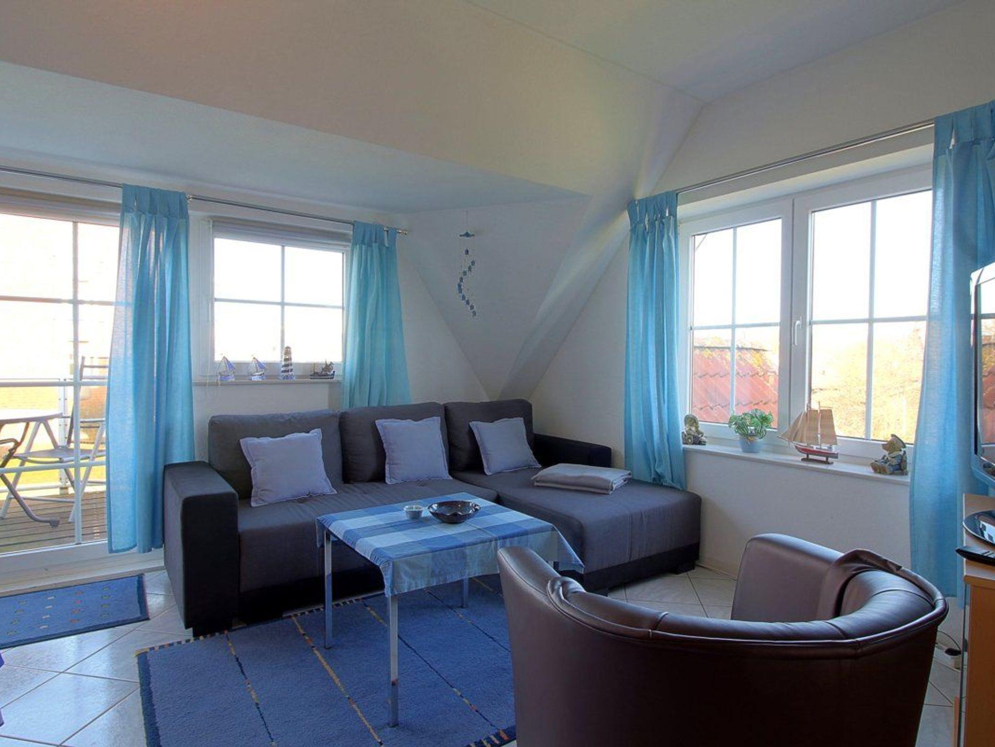 Das Wohnzimmer ist modern und bequem eingerichtet. Auch hier fehlt nichts! Fernseher und W-LAN können Sie kostenfrei benutzen, damit Sie im Urlaub auf nichts verzichten müssen.