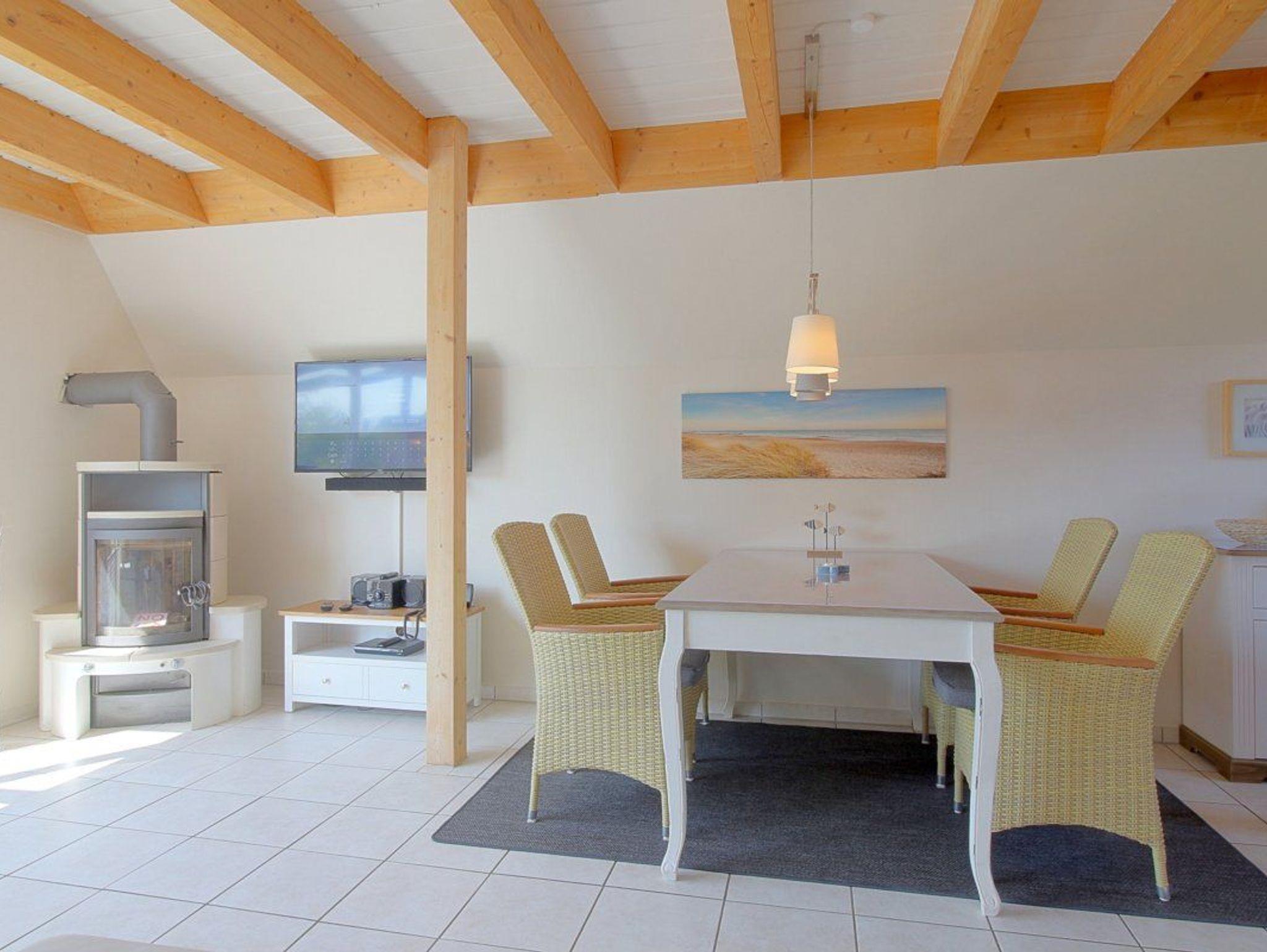 In der großzügigen Sitzgarnitur können Sie dem Kaminfeuer zuschauen, oder einfach nur fernsehen, oder ein gutes Buch lesen. Der Essplatz bietet Platz für 4 Personen.
