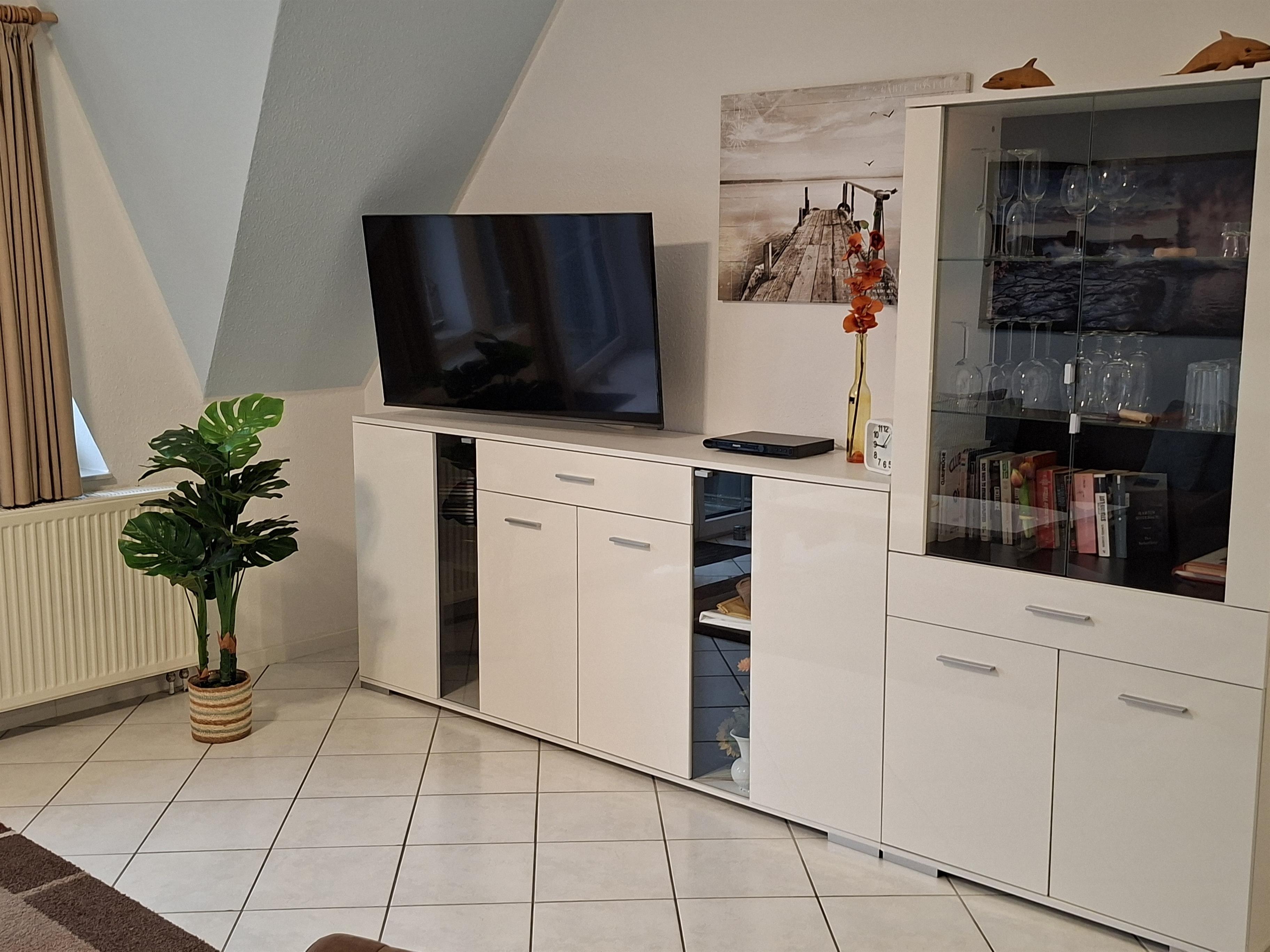 Geräumiges Wohnzimmer mit Essplatz (29 qm), komplett eingerichtete Küche mit Kühlschrank, Herd/ Backofen, 4 Ceranfelder, Mikrowelle, Wasserkocher Toaster, Eierkocher, Mixer, Stabmixer, Kaffeemaschine, Belegung bis max. 3 Personen und 1 Kleinkind im Kinderreisebett. PKW-Stellplatz vorhanden. Kostenlos