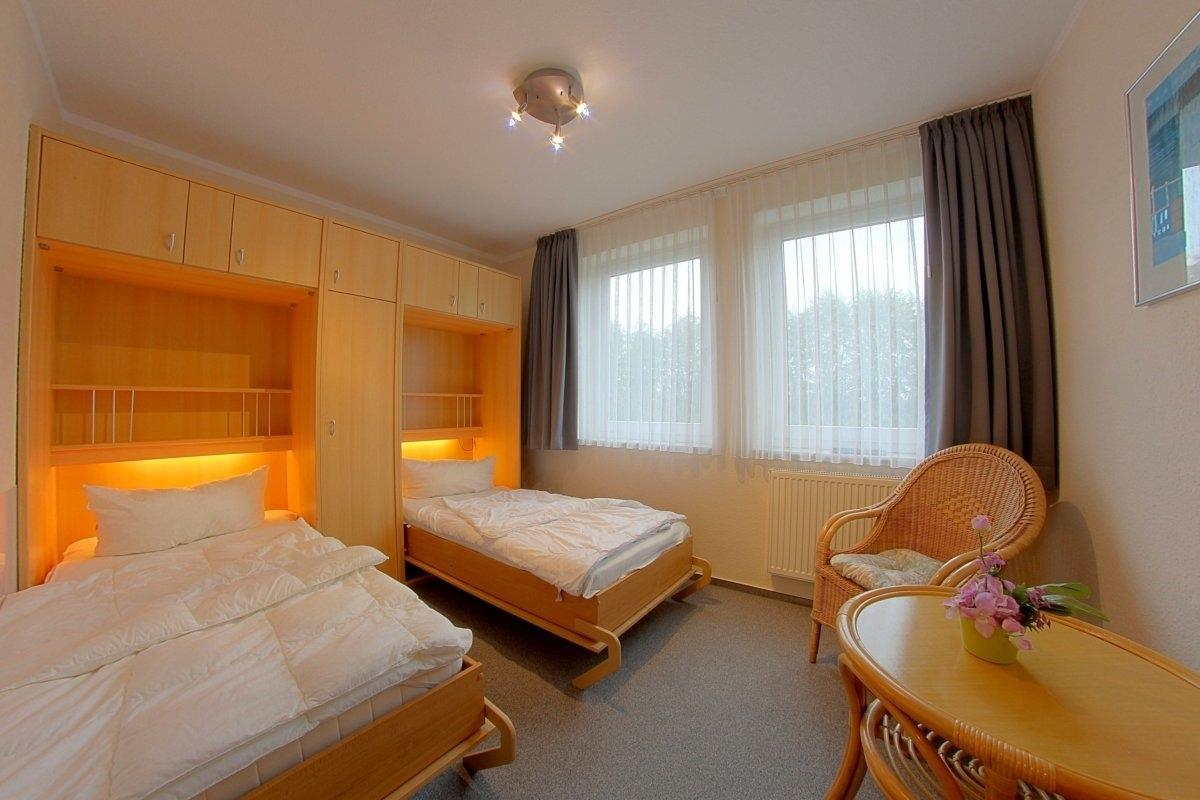 Die Ferienwohnung verfügt über drei Räumen und bietet Schlafplätze für 4 Personen. Dinge des alltäglichen Lebens wie Staubsauger, Bügeleisen, Bügelbrett usw. sind vorhanden. Zur Wohnung gehört ein Südwest Balkon mit Tisch, Stühlen und Sonnenschirm sowie ein reservierter Parkplatz (Stellplatz 48). Das Appartment hat eine großzügig eingerichtete Küchenzeile, Dusche/WC, Farb-TV (Satellitenanlage) und ist hochwertig und ansprechend eingerichtet.