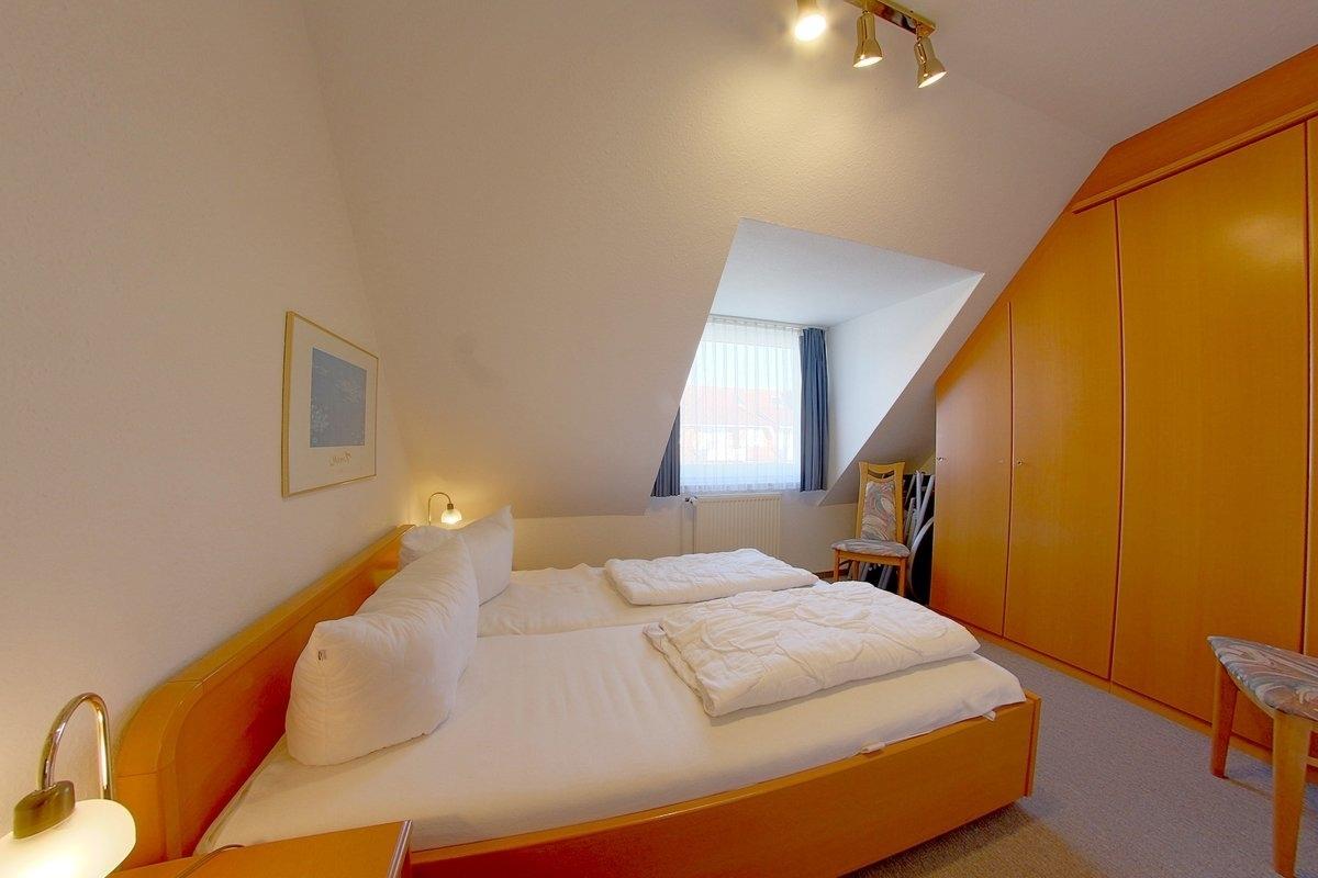 Im Schlafzimmer gibt es einen geräumigen Kleiderschrank, sowie ein Doppelbett (1,80x2,00m) für erholsame Nächte.