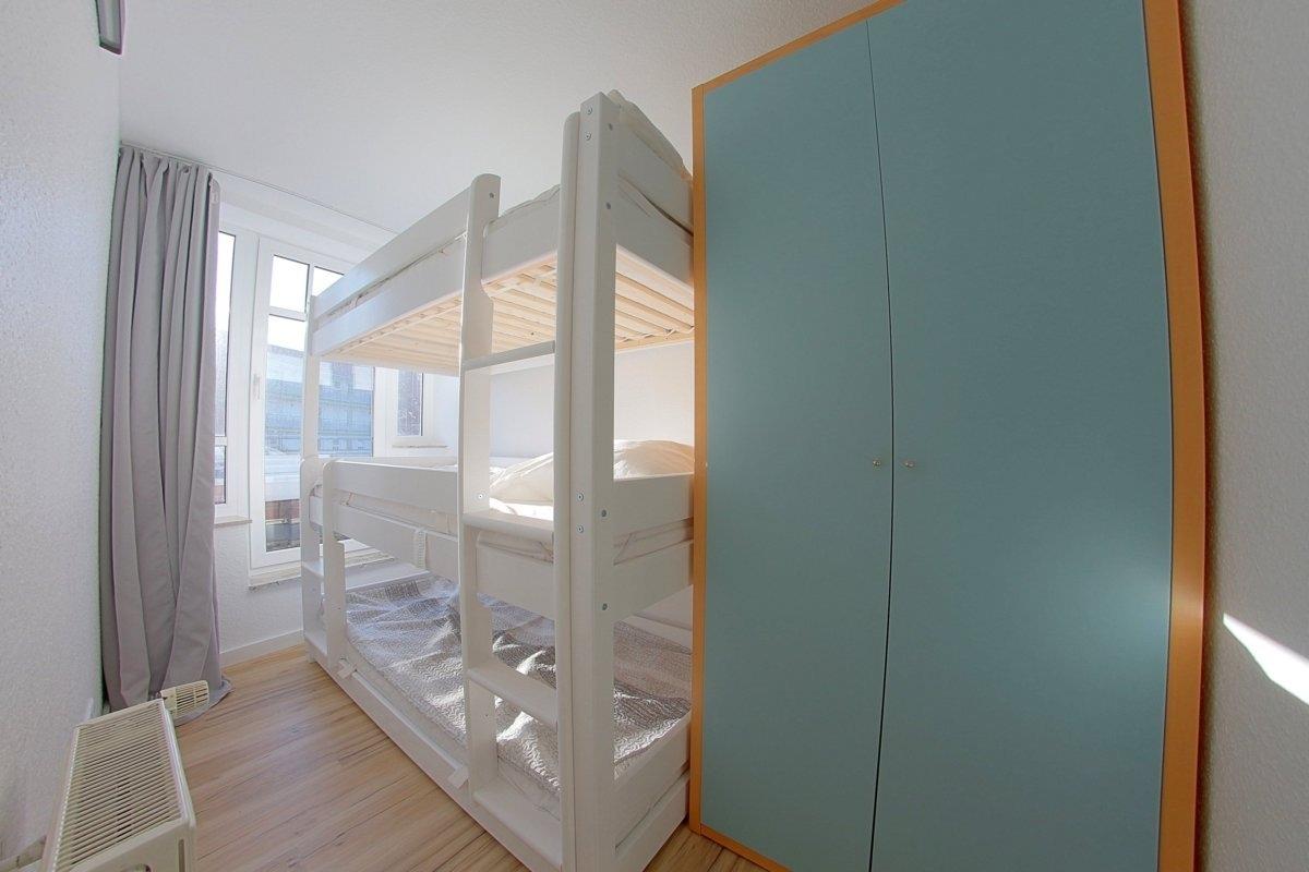 Im Elternschlafzimmer finden Sie ein Doppelbett(180*200). Im Kinderzimmer steht ein Etagenbett (90*200) bis 100kg je Etage. Die Schlafräume sind durch eine Schiebetür getrennt.