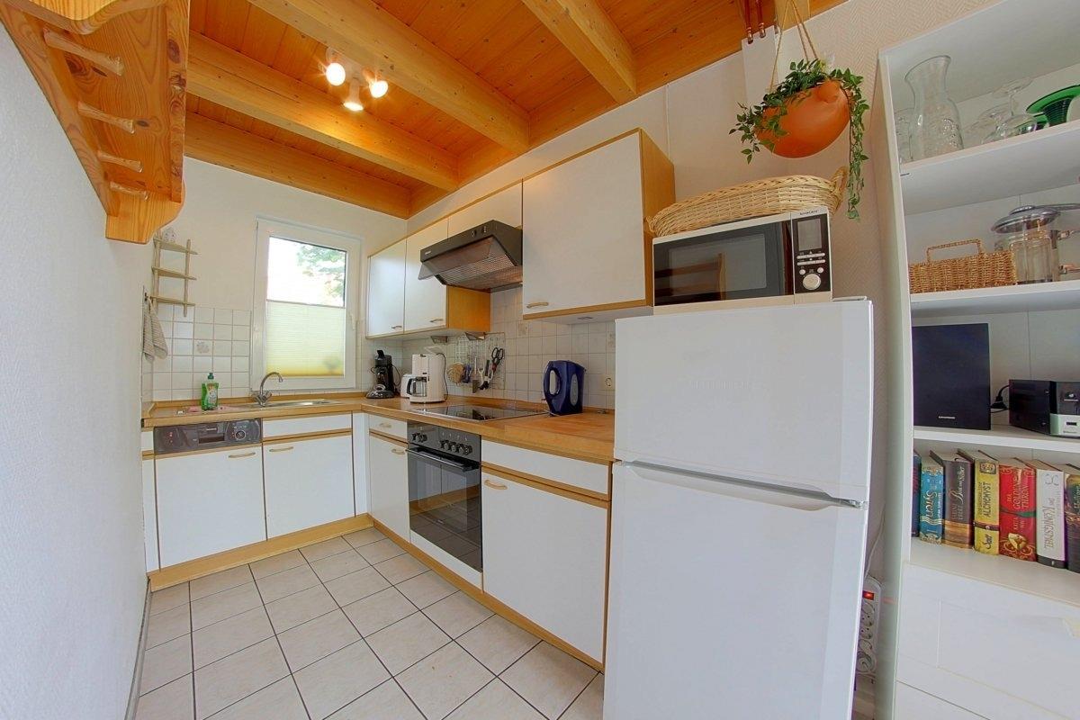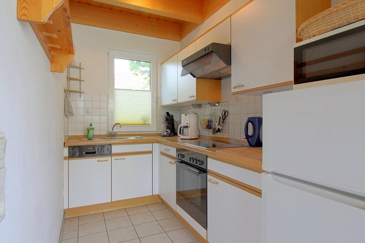 In der Einbauküche befinden sich ein Elektroherd mit Ceranfeld und Backofen, großer Kühlschrank mit Gefrierfach, Mikrowelle, Spülmaschine, Kaffeemaschine, Wasserkocher, Toaster, Eierkocher, Mixer, Kinder- Flaschenwärmer, Bügelbrett u.-eisen. Ferner steht Ihnen eine Waschmaschine zur Verfügung.