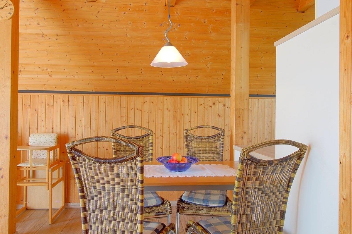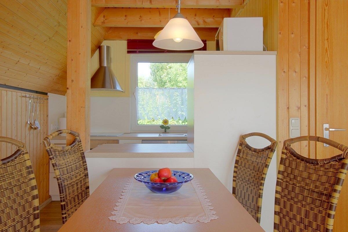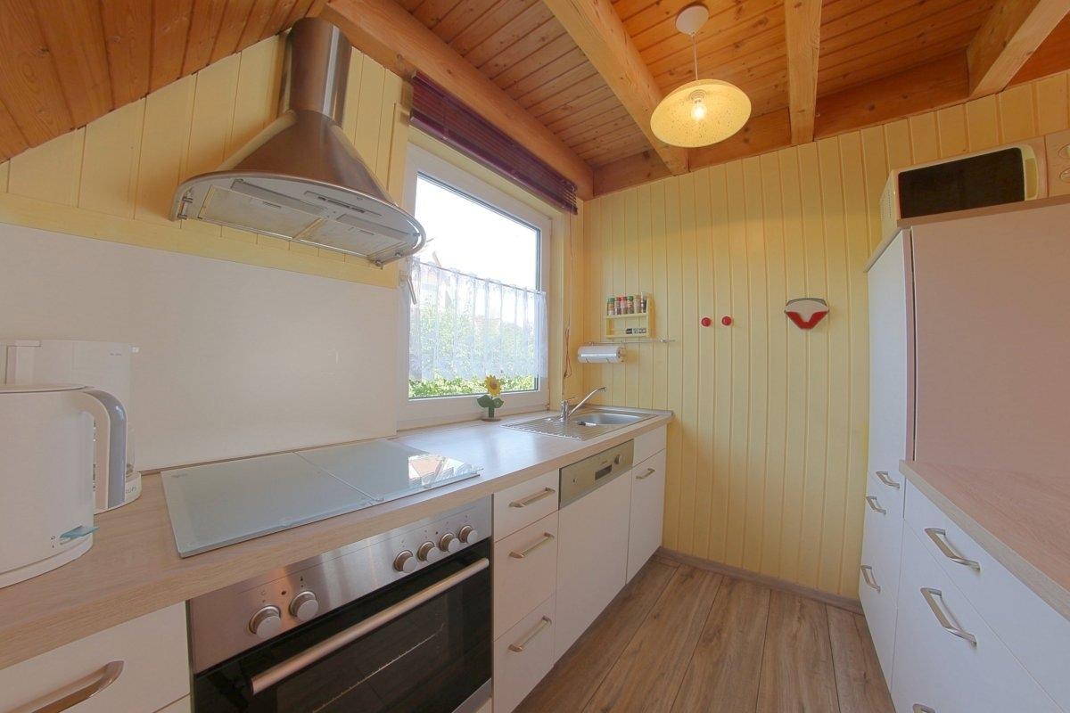 Im Erdgeschoss befindet sich das Wohnzimmer mit Küche, das Bad und ein kleiner Abstellraum.