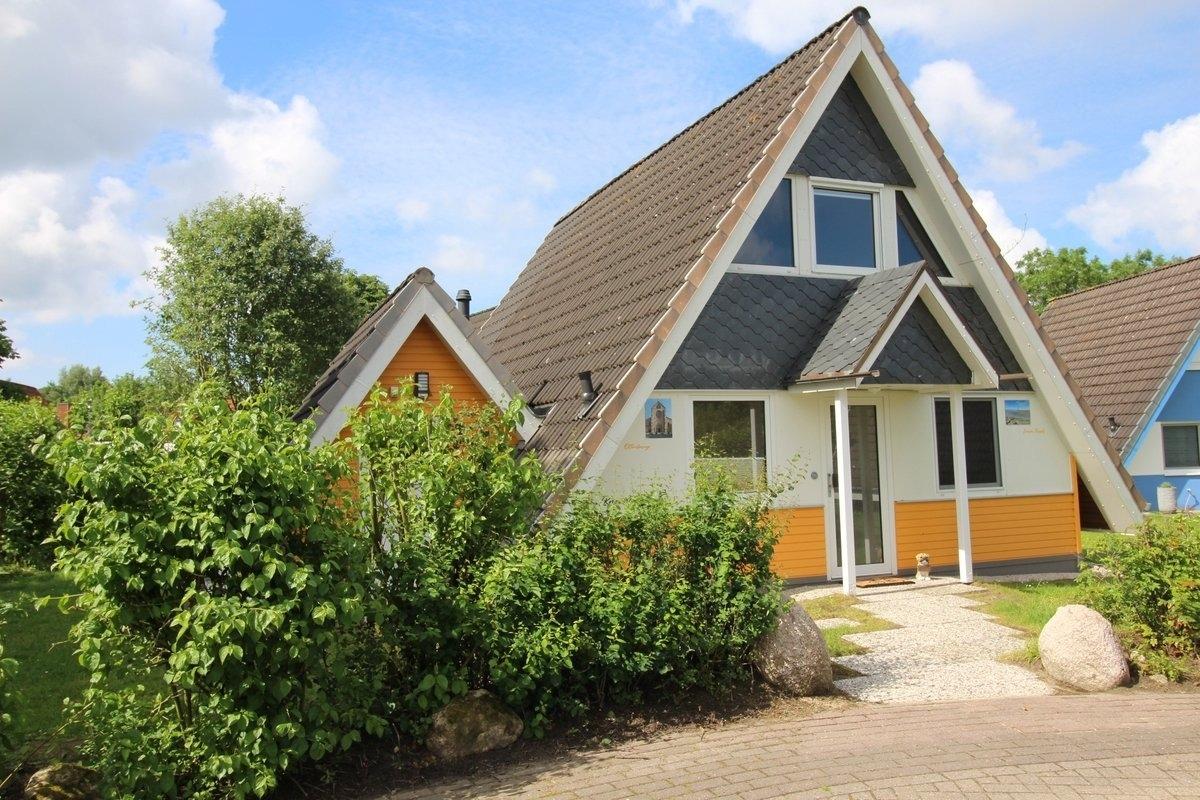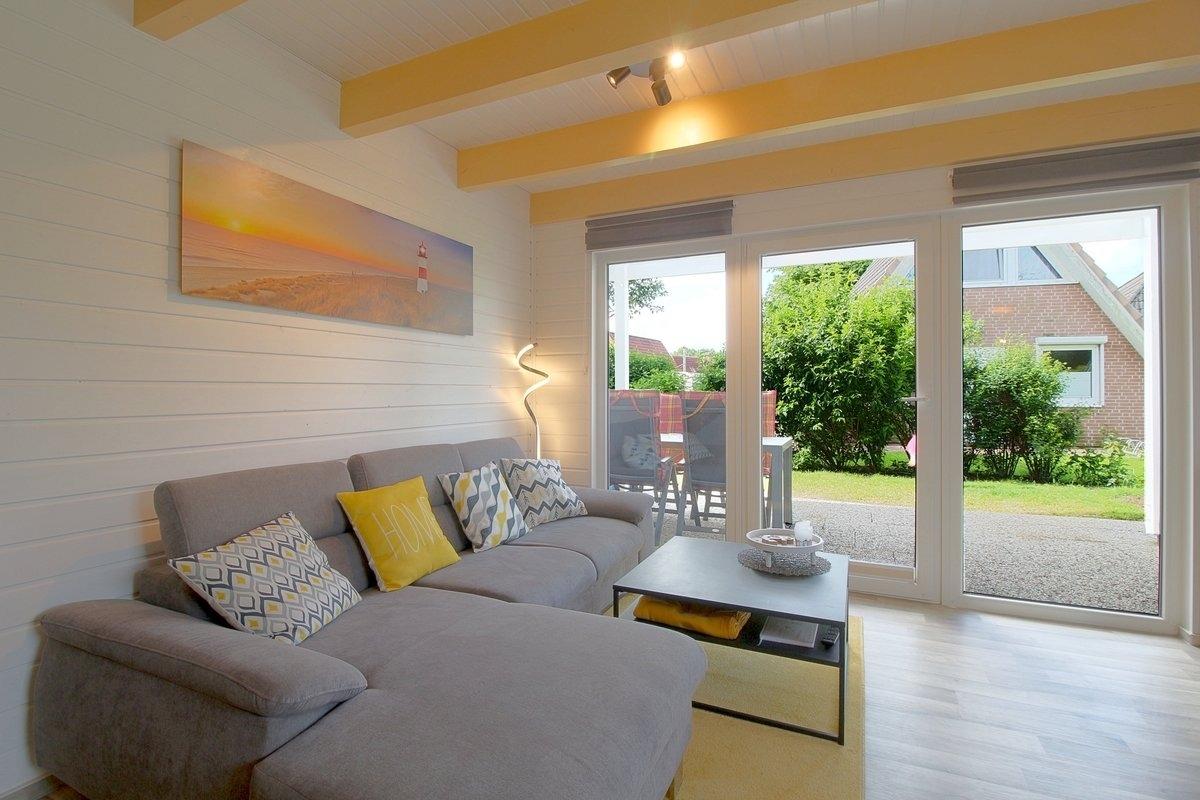 Geschmackvoll im maritimen Stil eingerichtetes Ferienhaus für bis zu 4 Personen und 1 Kleinkind in einem beliebten Ferienpark nur wenige Gehminuten vom Strand entfernt.