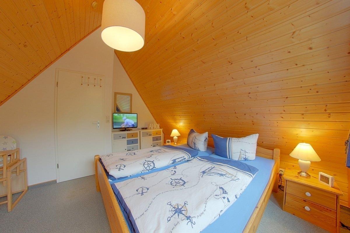 Ein Schlafzimmer mit Doppelbett und Flachbild TV mit integriertem DVD-Player, ein Schlafzimmer mit zwei Einzelbetten und Flachbild TV mit integriertem DVD-Player im Obergeschoß stehen Ihnen hier im Haus zur Verfügung. Die Schlafräume verfügen über Verdunkelungsmöglichkeit. Alle Fenster mit Insektenschutz.