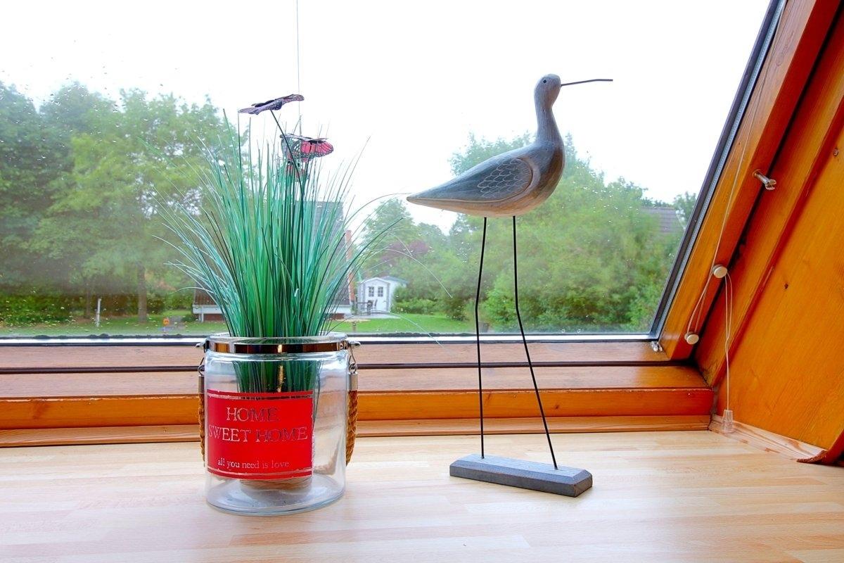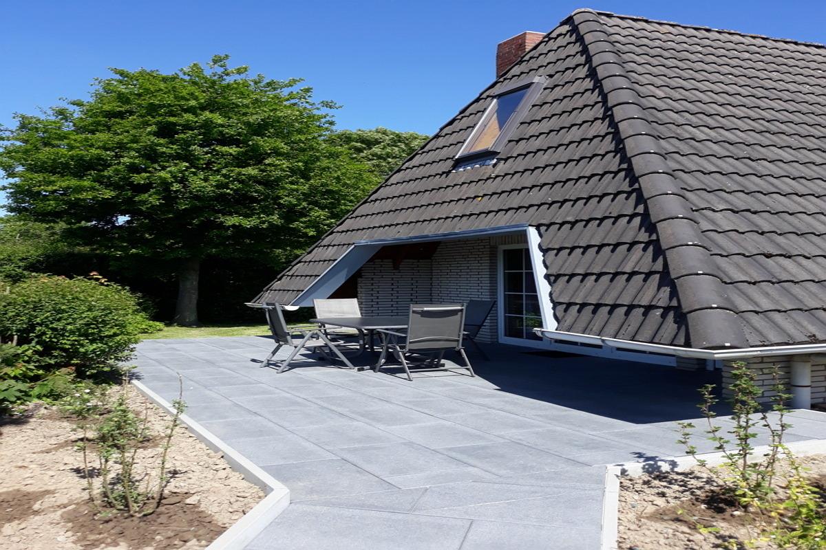 Das Massivhaus verfügt über ein eigenes Grundstück mit südlicher Terrasse und ausreichend Rasenfläche. Der Rasenbereich hinter dem Haus ist durch Anpflanzungen vor fremden Blicken geschützt. Es gibt nur zwei Nachbarhäuser. Ein kostenloser Parkplatz liegt unmittelbar am Haus. Es stehen Gartenmöbel sowie zwei Sonnenliegen mit Auflagen zur Verfügung. Ein kleiner Kinderspielplatz ist vom Wohnzimmerfenster einsehbar. Ein Fahrradständer steht vor der Haustür. Der Terrassenbereich ist überdacht. Von außen ist ein kleiner Abstellraum vorhanden. Auf dem Grundstück befindet sich ein Gartenhaus. Eine Hälfte steht ausschließlich unseren Gästen zur Verfügung. Dort kann man Fahrräder oder Bollerwagen sicher unterstellen und einschließen.