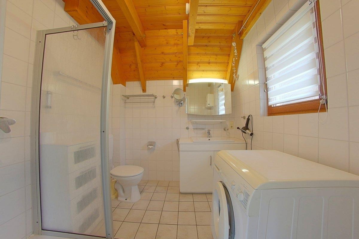 Duschbad mit Waschmaschine stehen im Erdgeschoss zur Verfügung und ein zusätzliches WC im Obergeschoss ist vorhanden.