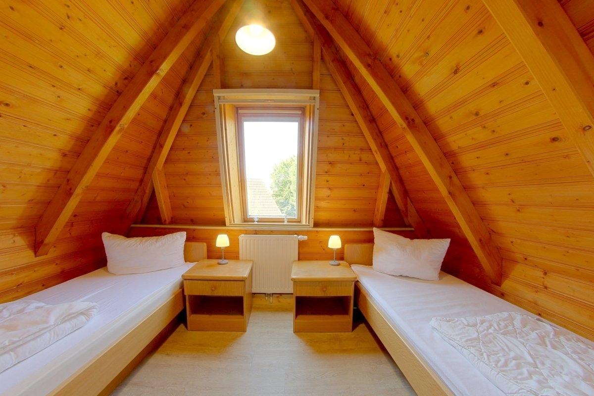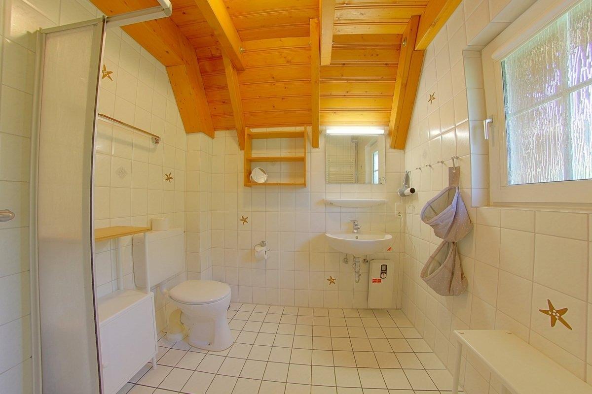 Im Obergeschoss befindet sich das Elternschlafzimmer mit Doppelbett, Babybett und TV, sowie ein weiteres Schlafzimme mit 2 Einzelbetten und ein zusätzliches WC.
