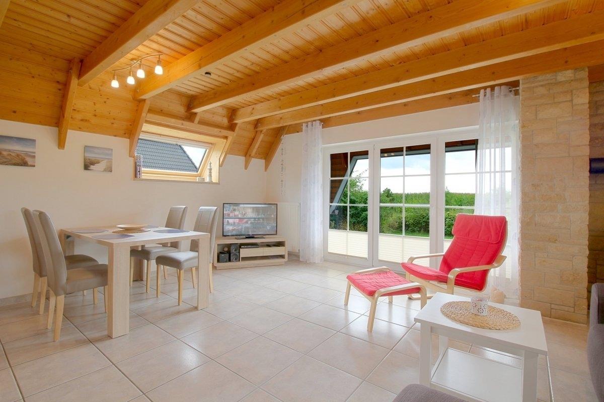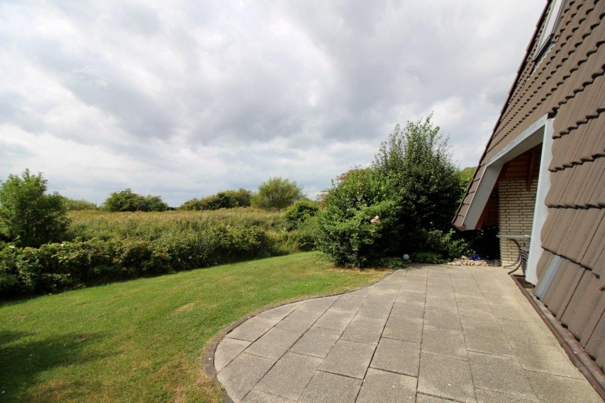 Vom Wohnzimmer aus erreichen Sie unsere blickgeschützte Südterrasse zur unbeschwerten Entspannung. Aktuelle Gartenmöbel, 3 Sonnenliegen und ein Holzkohlegrill sind selbstverständlich vorhanden.
