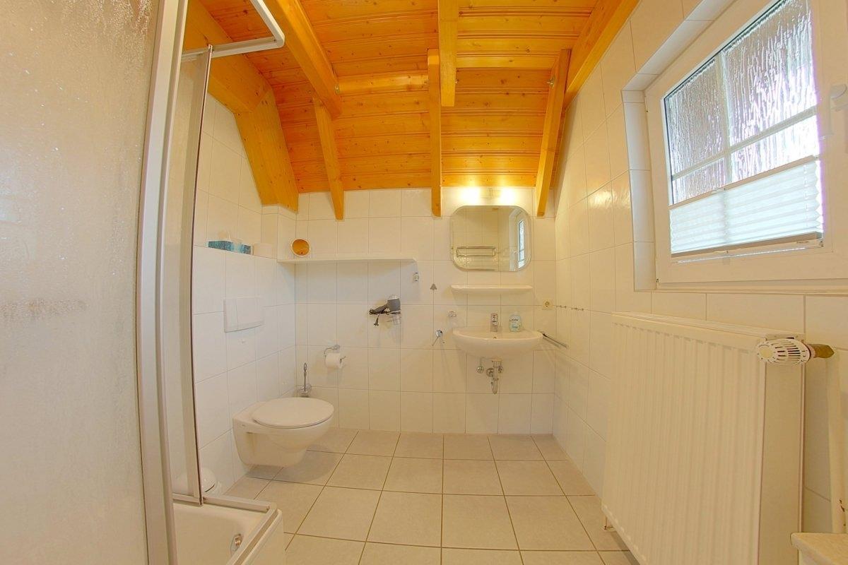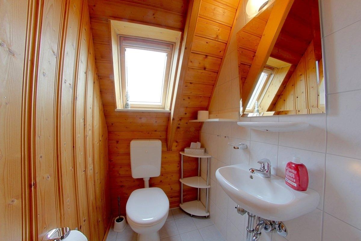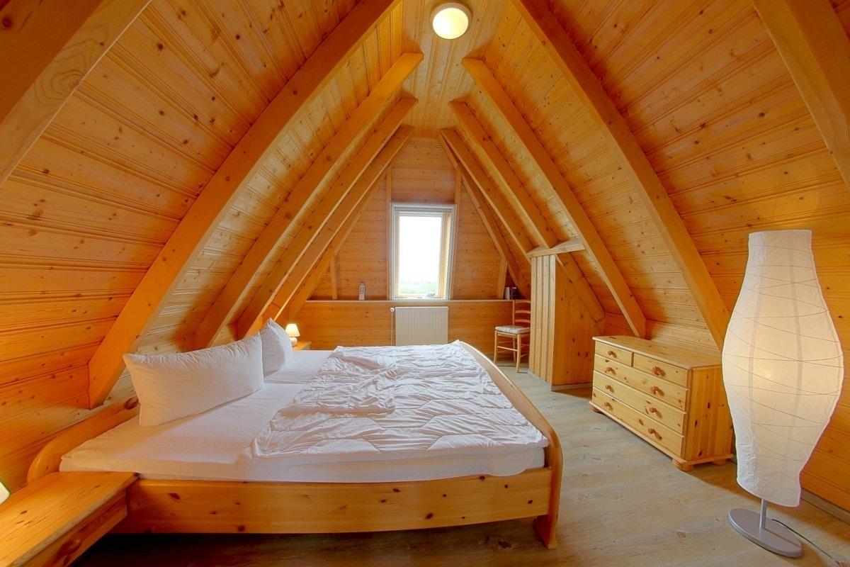 Im Dachgeschoss befinden sich 2 Schlafzimmer. Das Elternschlafzimmer hat ein Doppelbett, das Kinderzimmer verfügt über 2 Einzelbetten. Beide Schlafzimmer verfügen über Insektenschutz und Verdunklungsrollos, um einen optimalen, ungestörten Schlaf zu gewährleisten. Ein extra WC mit Handwaschbecken befindet sich ebenfalls im Dachgeschoss.