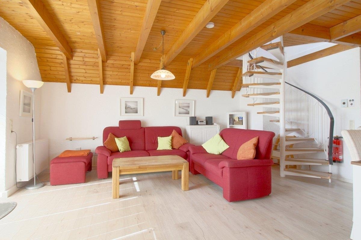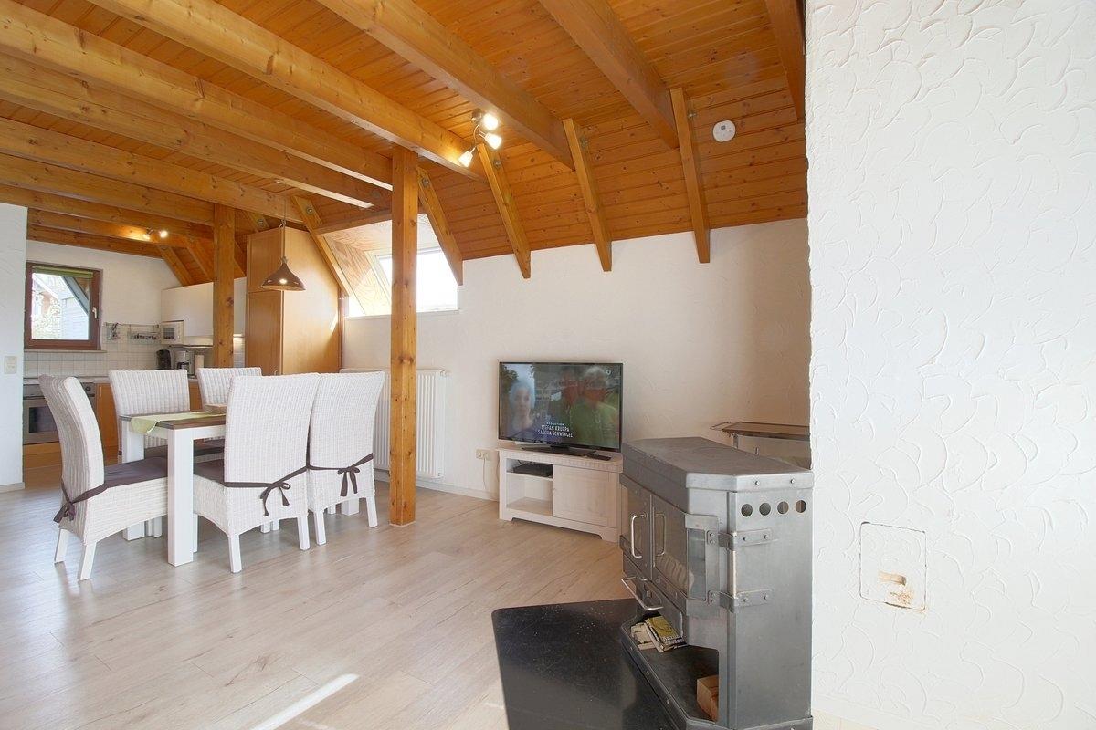 Der Wohnbereich mit Kaminofen, großem Flat-TV, Telefon und kostenlosem Internet (Glasfaseranschluss) bietet genügend Platz für die Familie. Einen Hochstuhl finden Sie ebenfalls im Haus.
