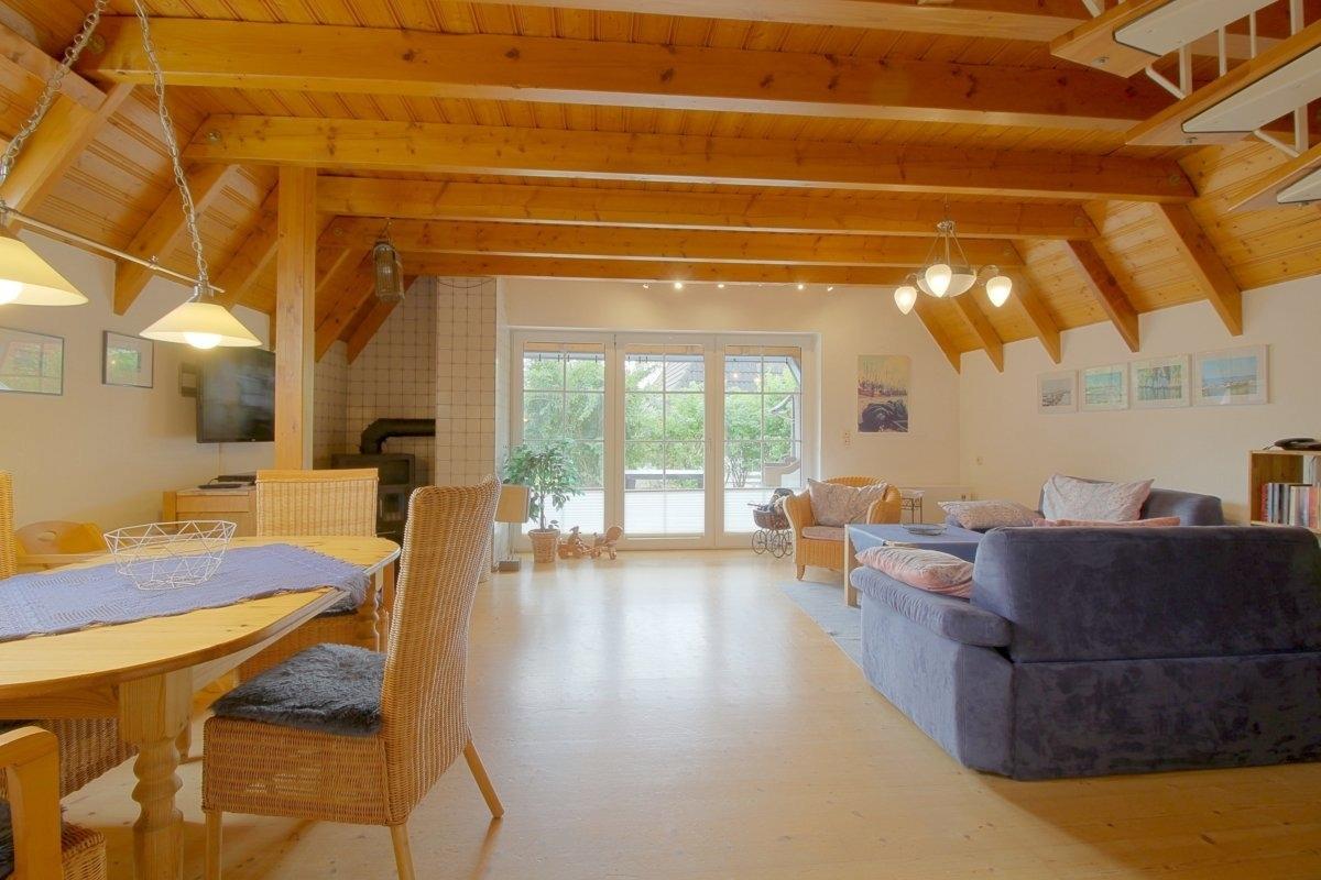 Auf der sonnigen Terrasse mit Gartenmöbeln und eigenem Strandkorb können Sie ein gutes Buch lesen oder bei Sonnenschein gemütlich sitzen und essen oder relaxen.